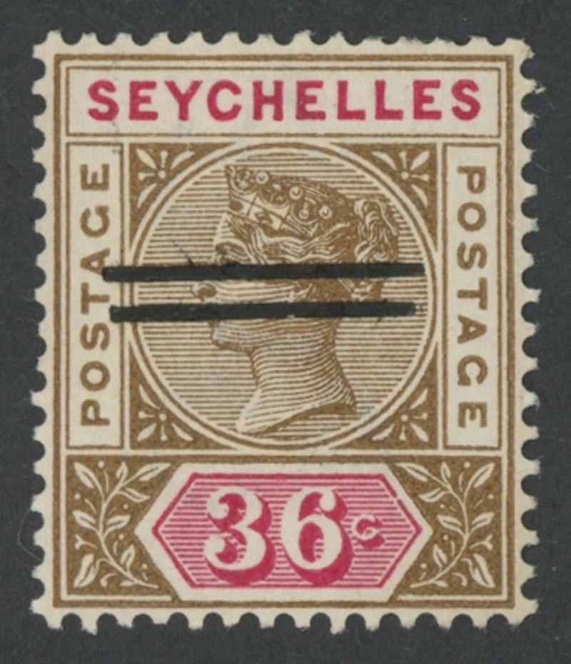 1901 Surcharges on QV Keyplates New Colours '3 cents/[two bars]' on 36c brown & carmine with '3 cents' Omitted resulting in two