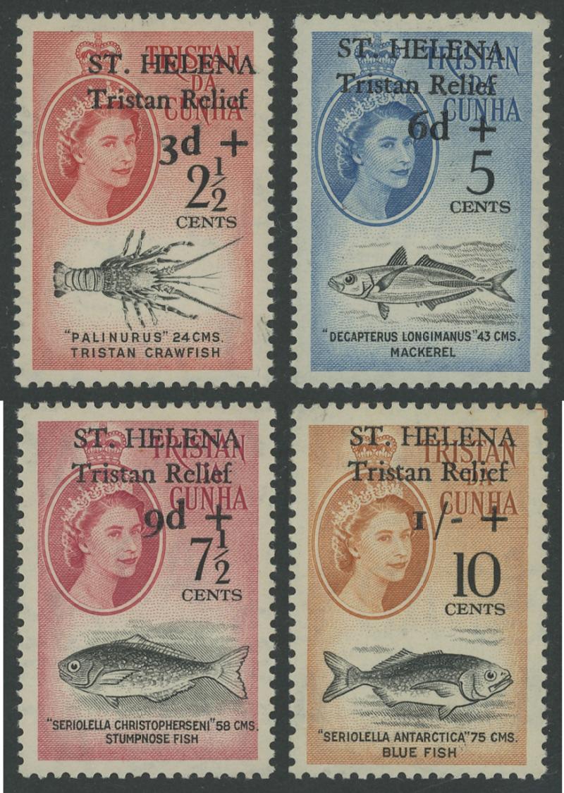 1961 Tristan Relief Fund Surcharges on Tristan da Cunha 2½c+3d to 10c+1/- SG 172-175, generally well-centred, the 10c+1/- centred