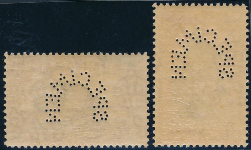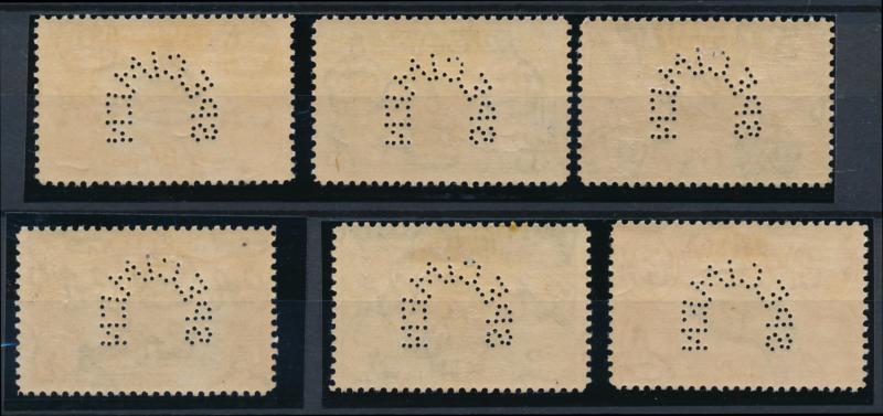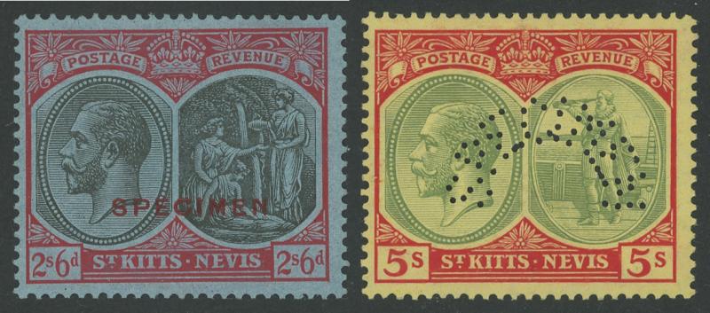 1921-29 KGV Badge Multiple Crown CA Watermark ½d to 5/- set with 'SPECIMEN' overprints or punctures SG 37s-47cs, the higher values
