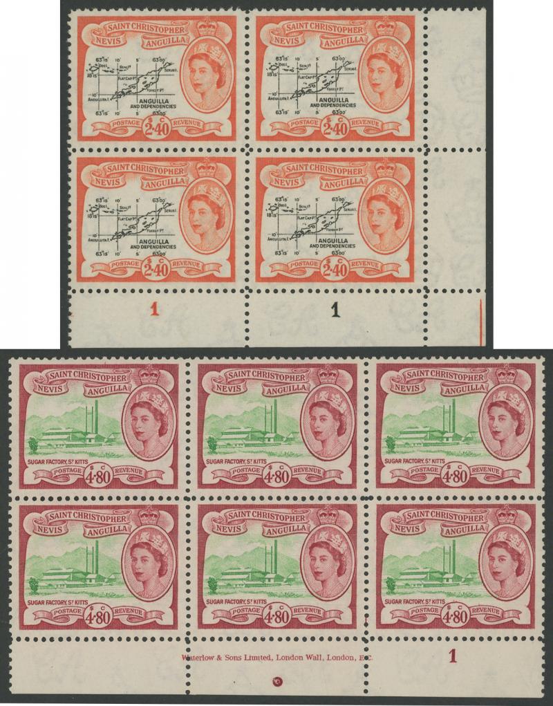 with Plate Number ' 1 ', plus $1.20 green & ultramarine, $2.40 & $4.80 in Waterlow & Sons Imprint blocks of 6, some lightly mounted or with small hinge remainders in the margins, the stamps all unmounted, Cat £900+ for singles.