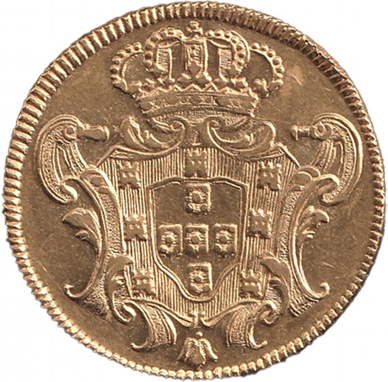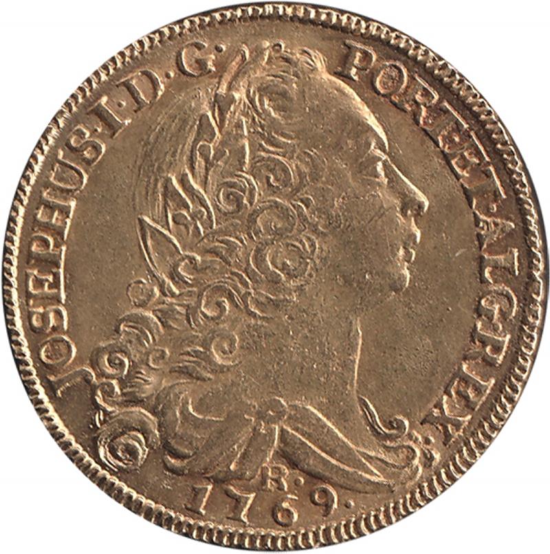 Brazil Half-Johanna (£2) 1769 Joseph I gold (14.18g 0.917) 4 Escudos or 6,400 Reis, mintmark 'R' Rio Brazil, Friedburg 65, KM