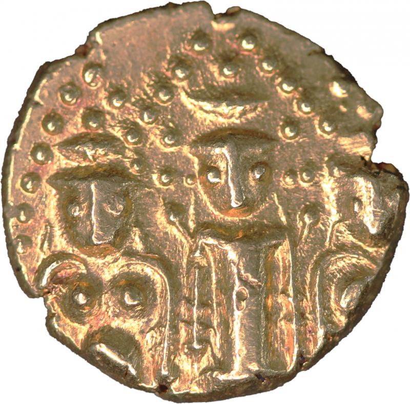 India Pagoda (8/-) 1740-1807 gold (3.42g 0.625) East India Company Madras Presidency, three deities standing, Friedburg 1575, KM