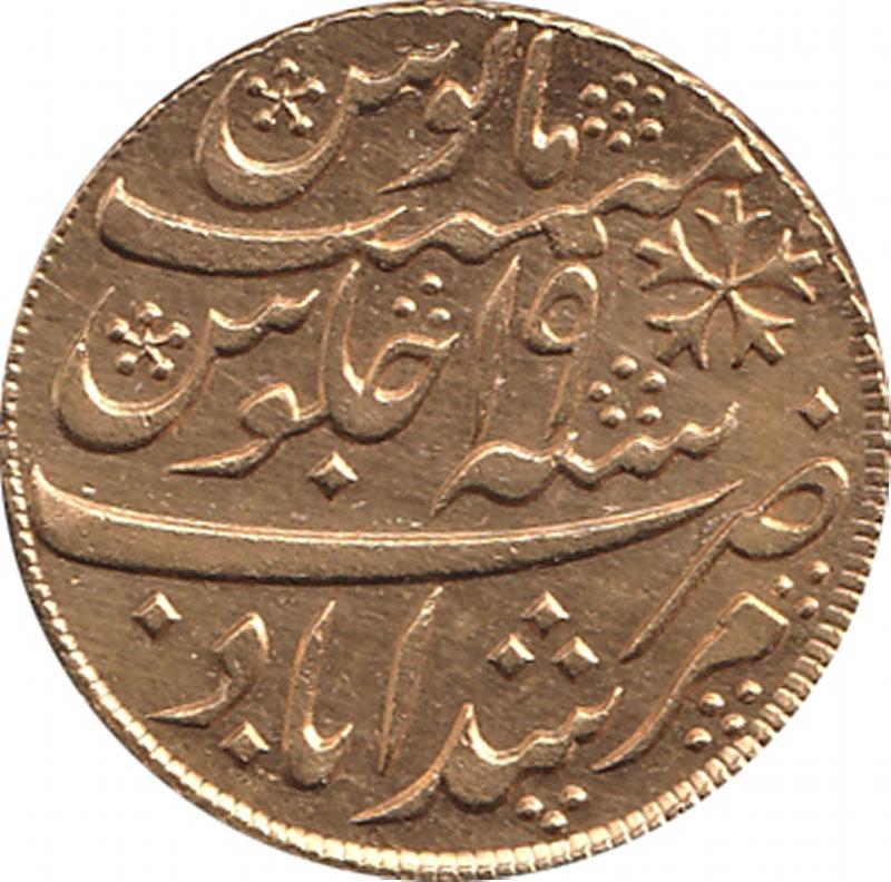 India Half Mohur 1793 gold (6.18g 0.996) East India Company Bengal Presidency Murshidabad, Friedburg 1538, KM 101, Uncirculated. (Image1) (Image2)