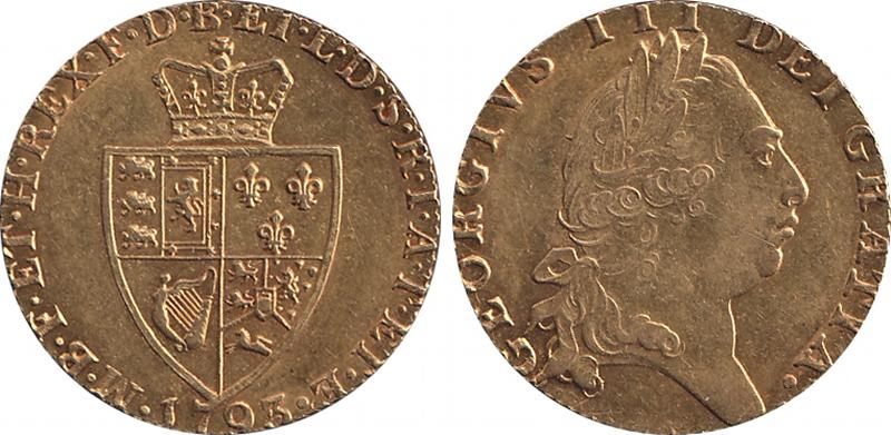 Great Britain Spade Guinea (£1/2/-) 1793 George III gold (8.35g 0.917) Spink 3729, KM 609, Friedburg 356, VF. (Image1) (Image2)