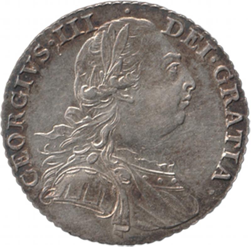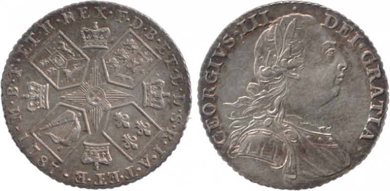 Great Britain Shilling (1/1d) 1787 George III Spink 3746, KM 606.2, With Semée of Hearts, EF. (Image1) (Image2)