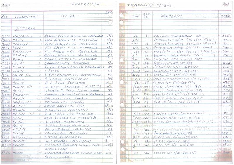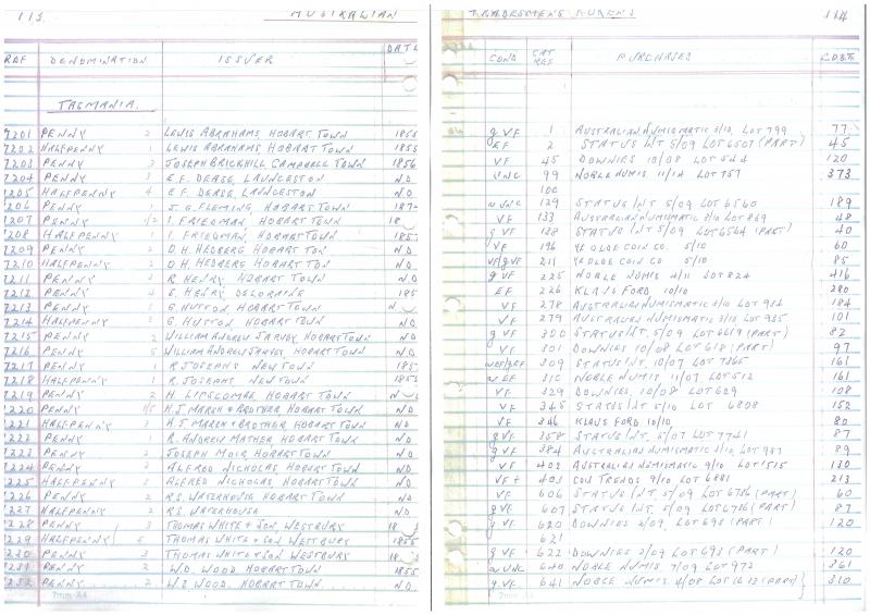 'R. Grieve' Eaglehawk G87, A153 (EF), 'Moubray Lush' G204, A391 (aEF), and many more all identified by Andrews catalogue numbers in individual paper packets, with listing of provenance, grade, date and price paid, available on request (or check