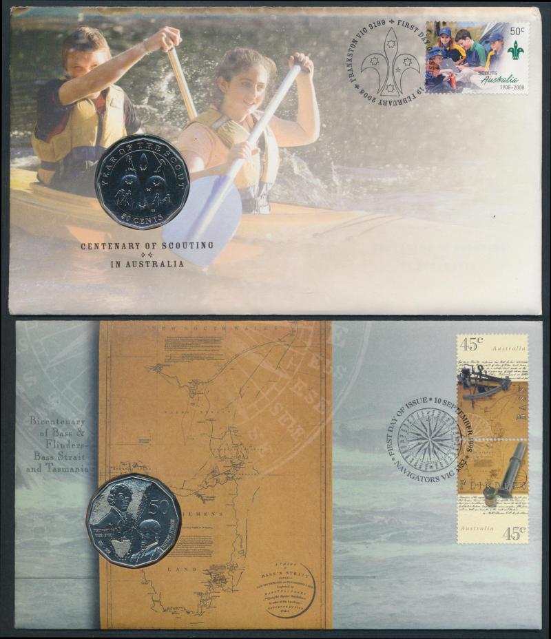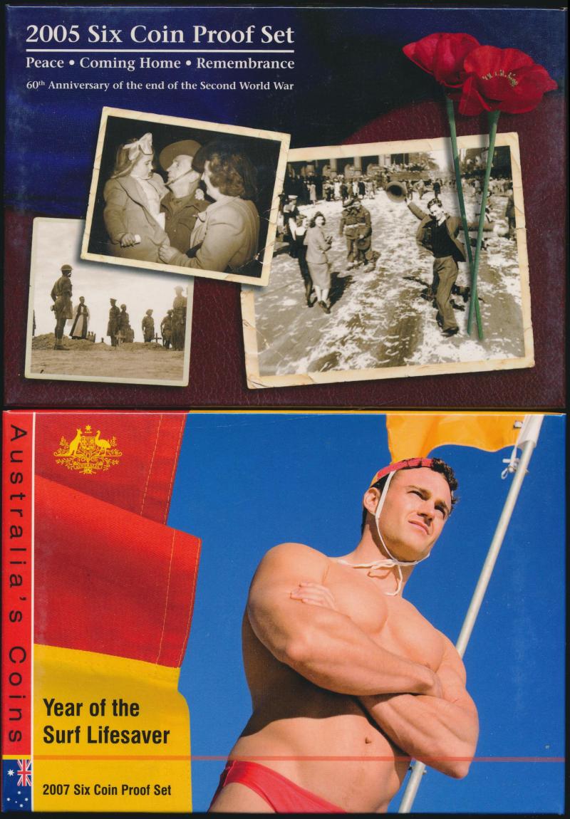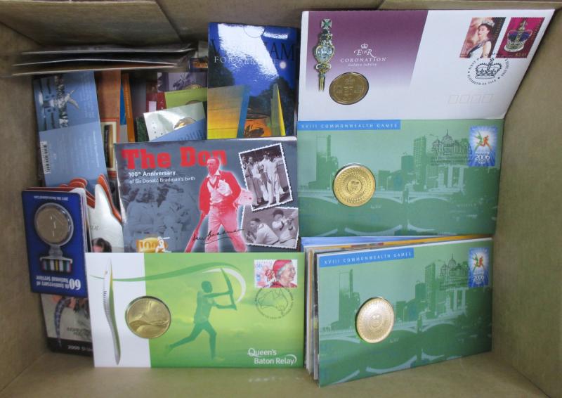 Flying Doctor with Phonecard x2, 2000 Phar Lap x2, 2002 Battle of Sunda Strait Proof; PNCs (21) including 2000 $1 For Valour, 2001 $1 Army, 2004 $5 Eureka x2, 2008 50c Scouting; packaging in fine condition.