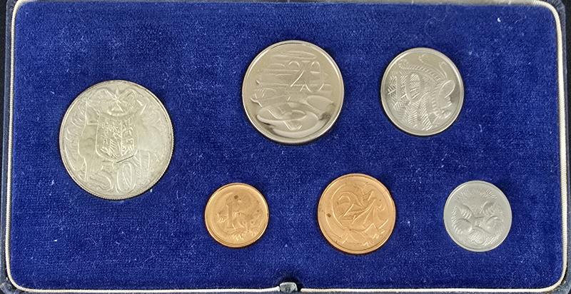 1966 Proof set in RAM Canberra blue case with 'COMMONWEALTH OF AUSTRALIA' on lid, light toning, signs of handling. (6) (Image1) (Image2)