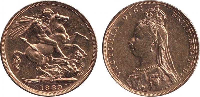 1889M QV Jubilee Head St George reverse, legend 'G' closer to Crown, Marsh 140A, Spink 3867B, light bag marks, aUnc. (Image1) (Image2)