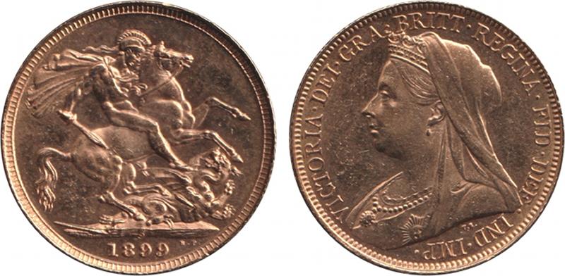 1899S QV Veiled Head St George reverse, Marsh 168, Spink 3877, light bag marks, aUnc. (Image1) (Image2)