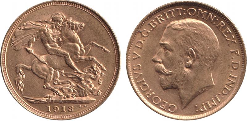 1913S KGV St George reverse, Marsh 273, Spink 4003, Uncirculated. (Image1) (Image2)