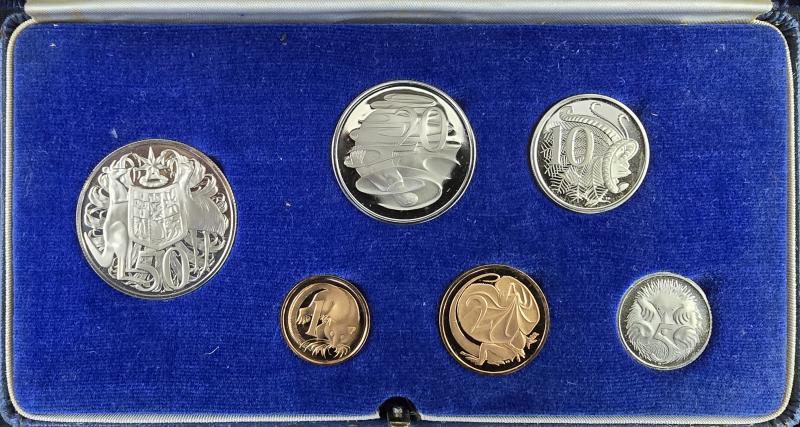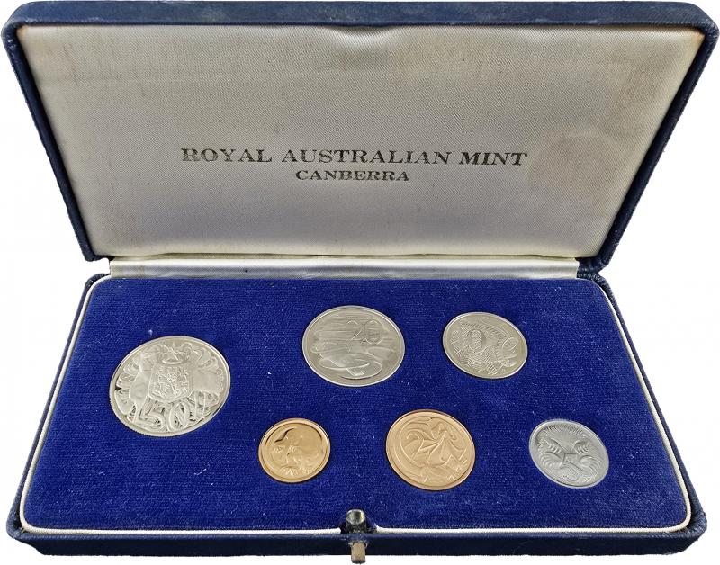 1966 Proof set in RAM Canberra blue case with 'ROYAL/AUSTRALIAN MINT' on lid, usual overall toning on all. (6) (Image1) (Image2)