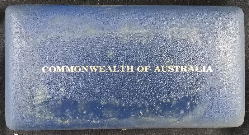 1966 Proof set in RAM Canberra blue case with 'COMMONWEALTH OF AUSTRALIA' on lid, case in poor condition, coins well above average