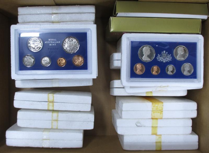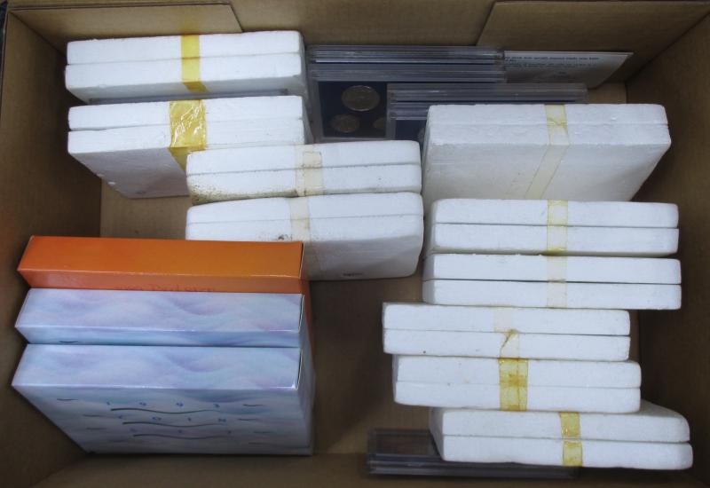 Two cartons containing Perth Mint & RAM product including Six-Coin Uncirculated sets 2007, 2013, 2014 x2, 2015, 2016-17 x2, 2018-19