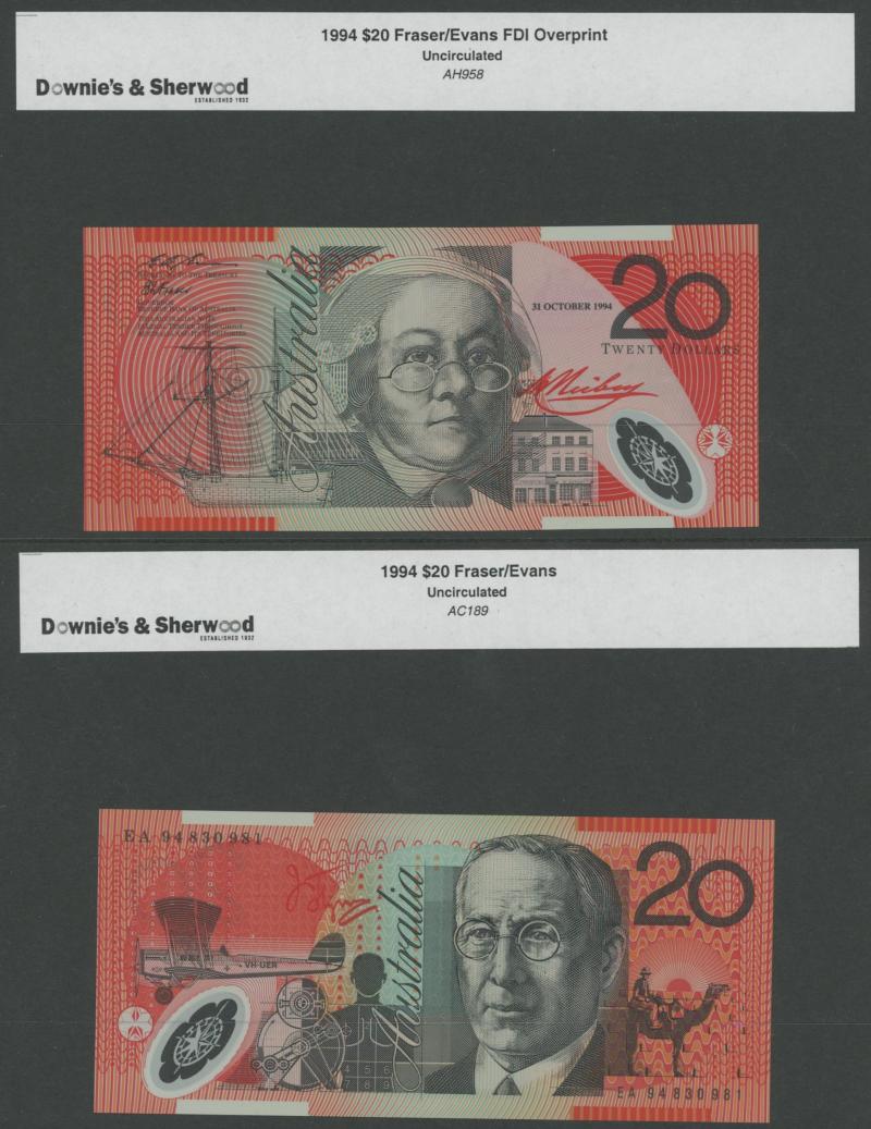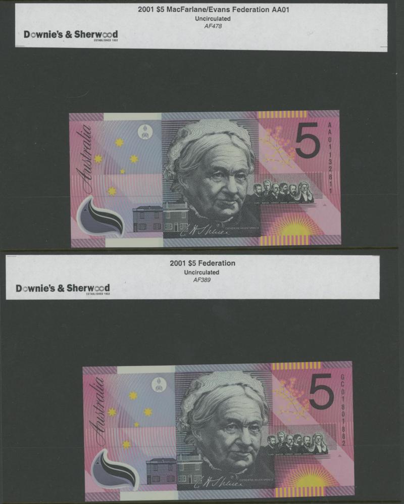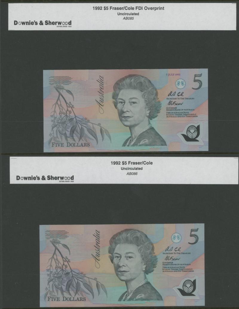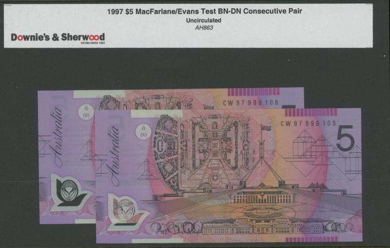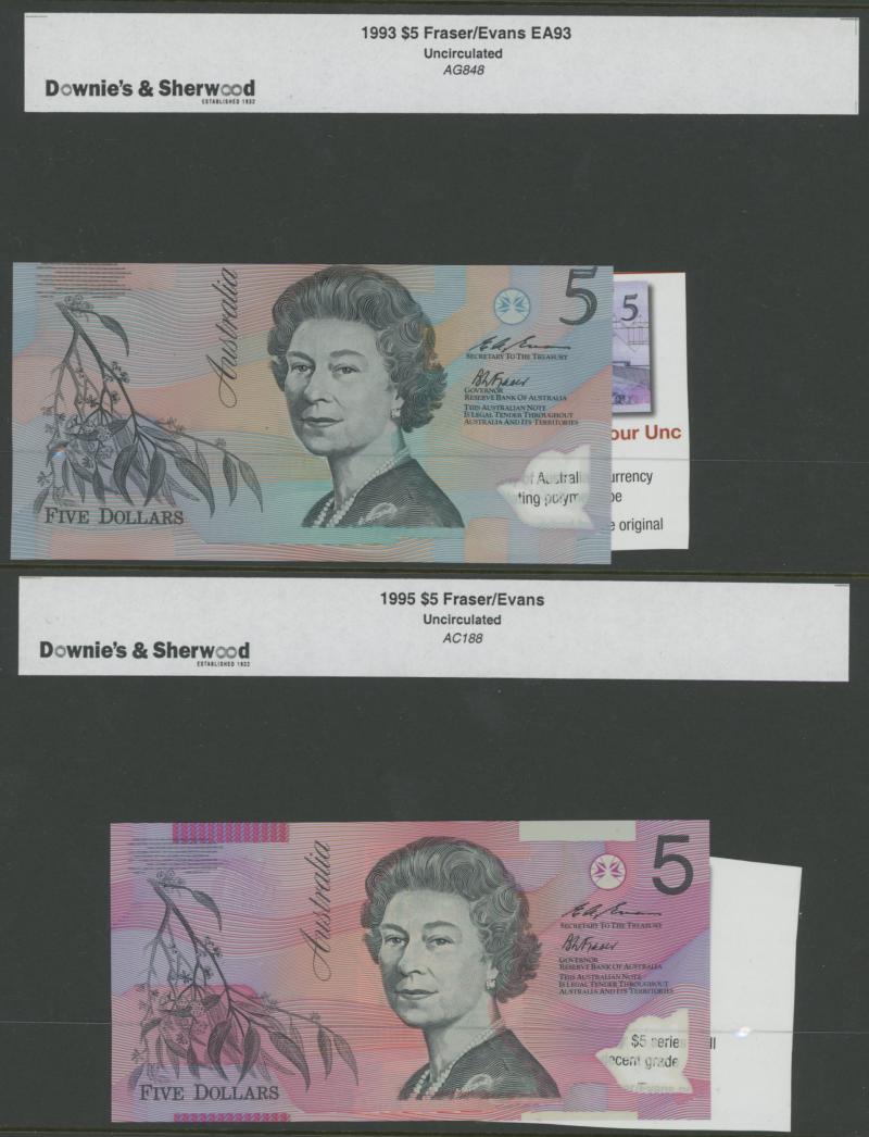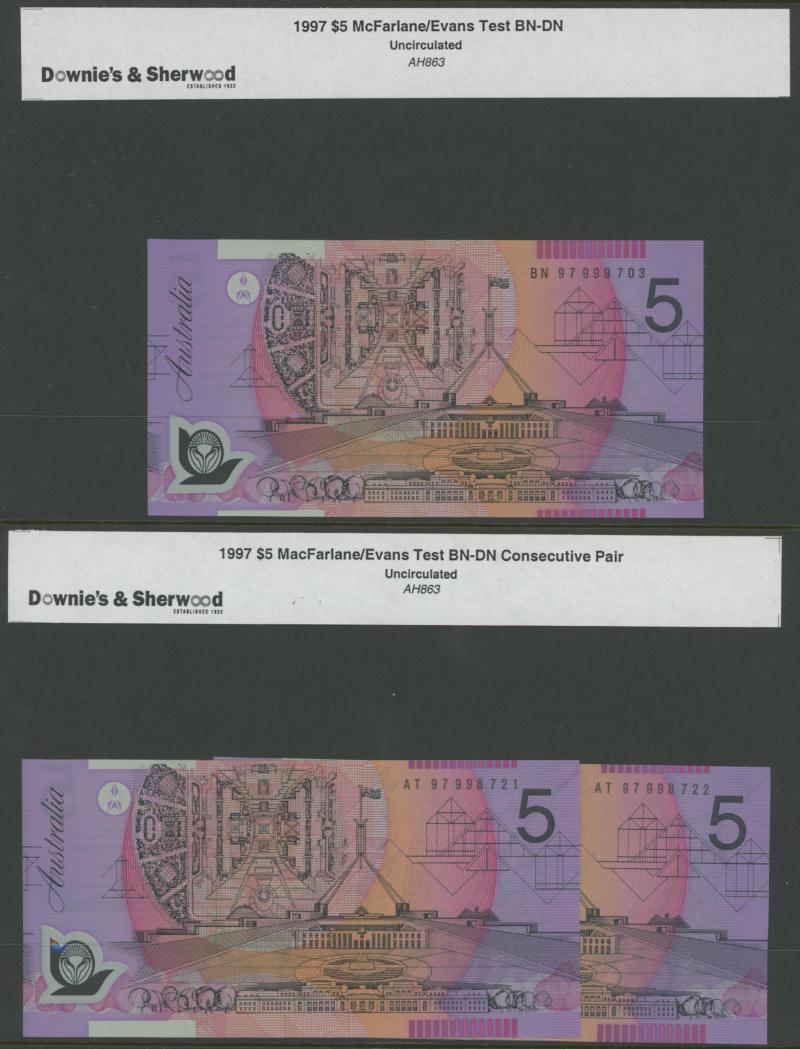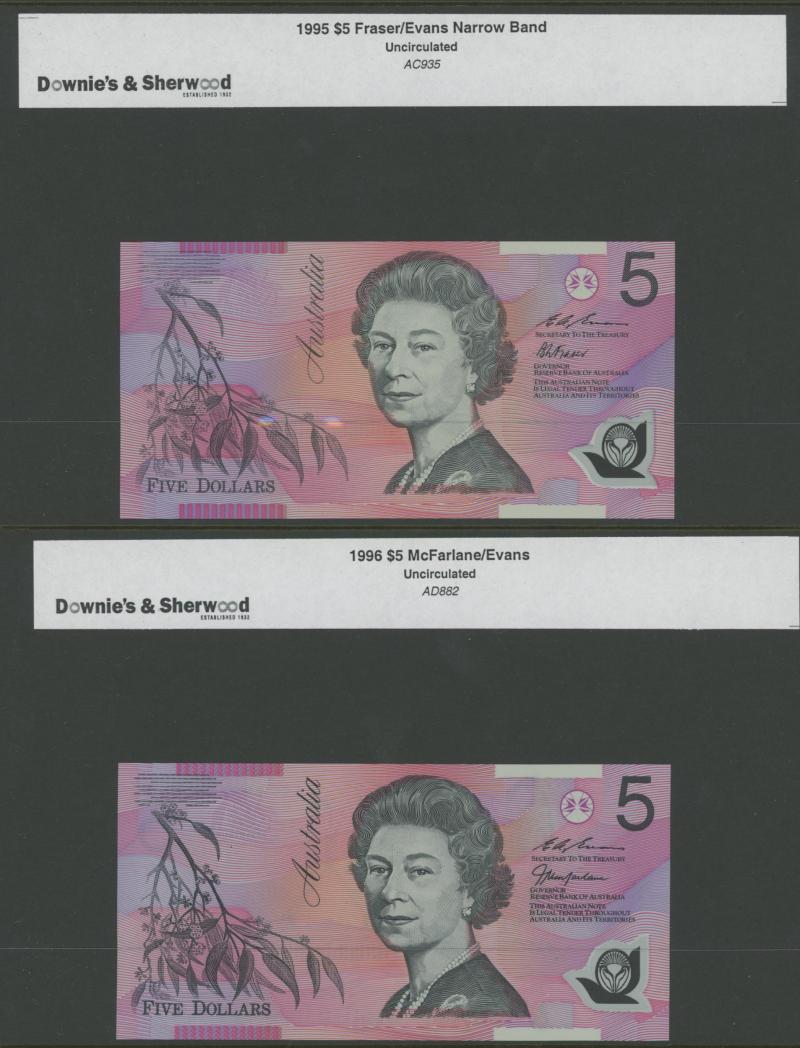 Fraser/Cole R214 plus dated (folder note), 1993 Fraser/Evans R216, 1995 R217a, R217ai Narrow Bands, 1996 Macfarlane/Evans R218a, 1997 Test Note Prefixes R218 (prefix 'AT') pair, R218Ti ('CW') pair & ('BN'), 2001 Macfarlane/Evans 'Federation' R219