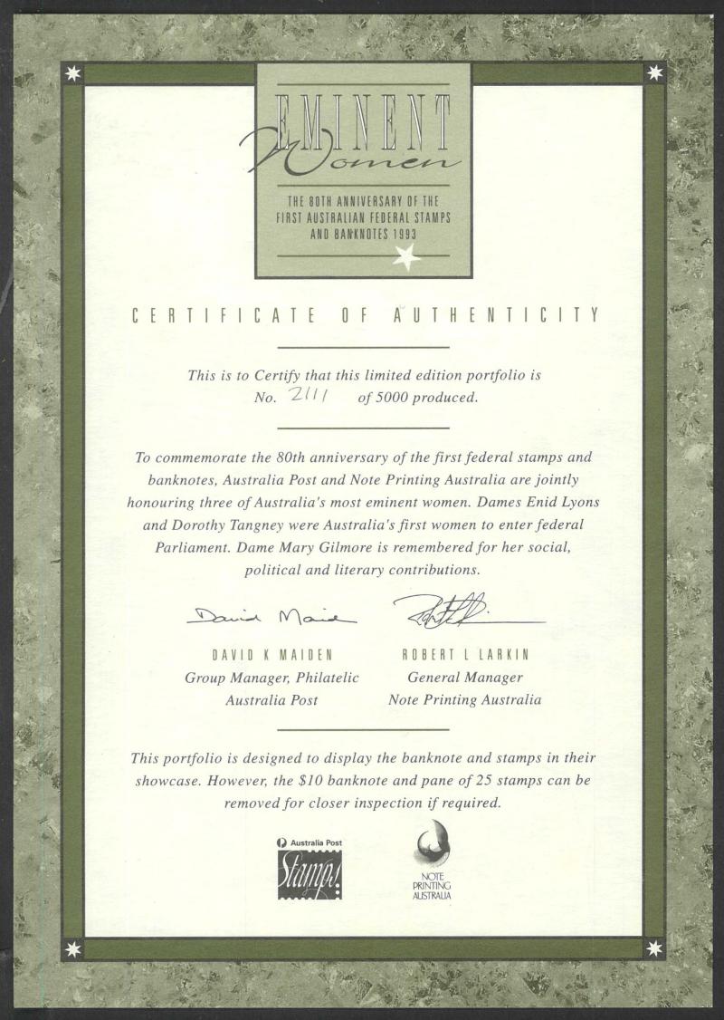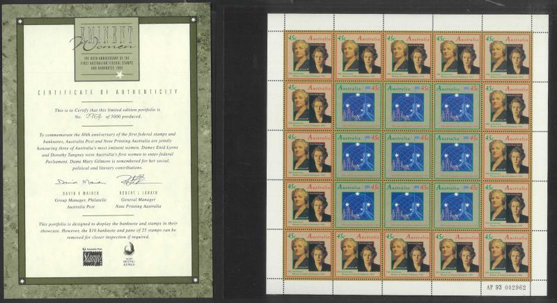 block of four; 1993 $10 Eminent Women folder (with additional numbered stamp sheetlet); and two ASDA $5 'Inverted Swan' phonecard packs.
