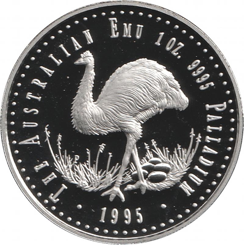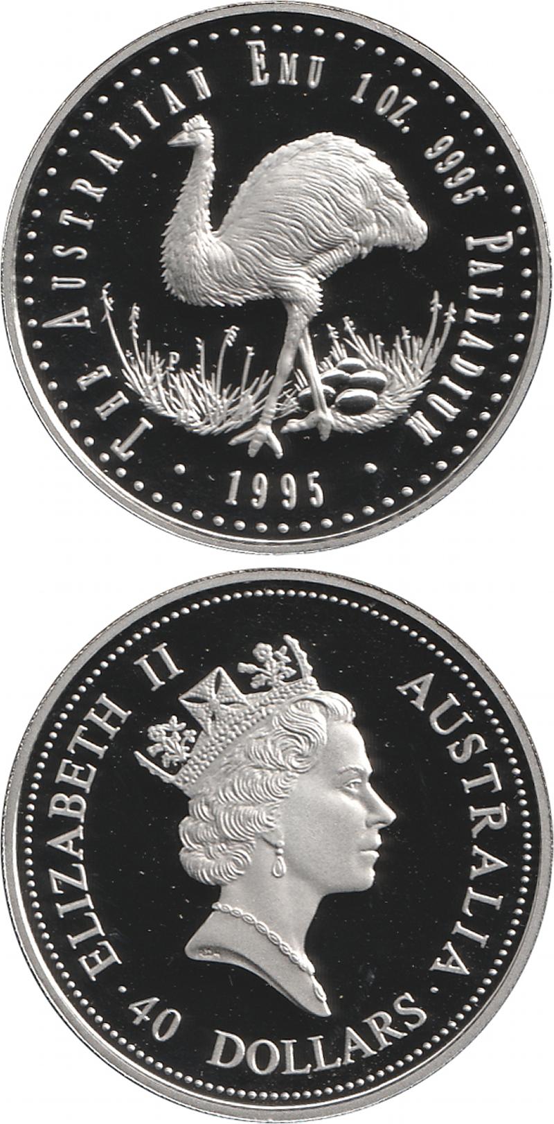 1995 $40 Australian Emu palladium ounce (31.1g 0.995) Proof cased with certificate #585. (Image1) (Image2)