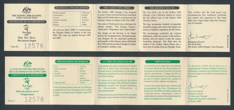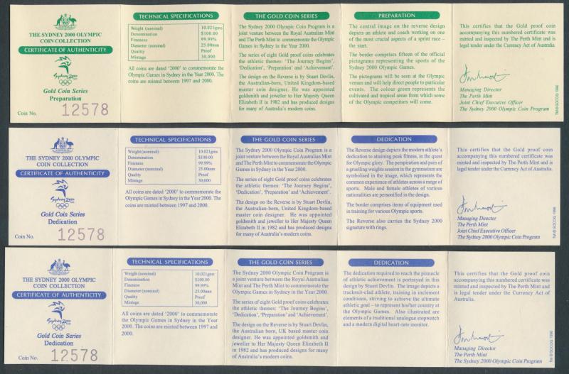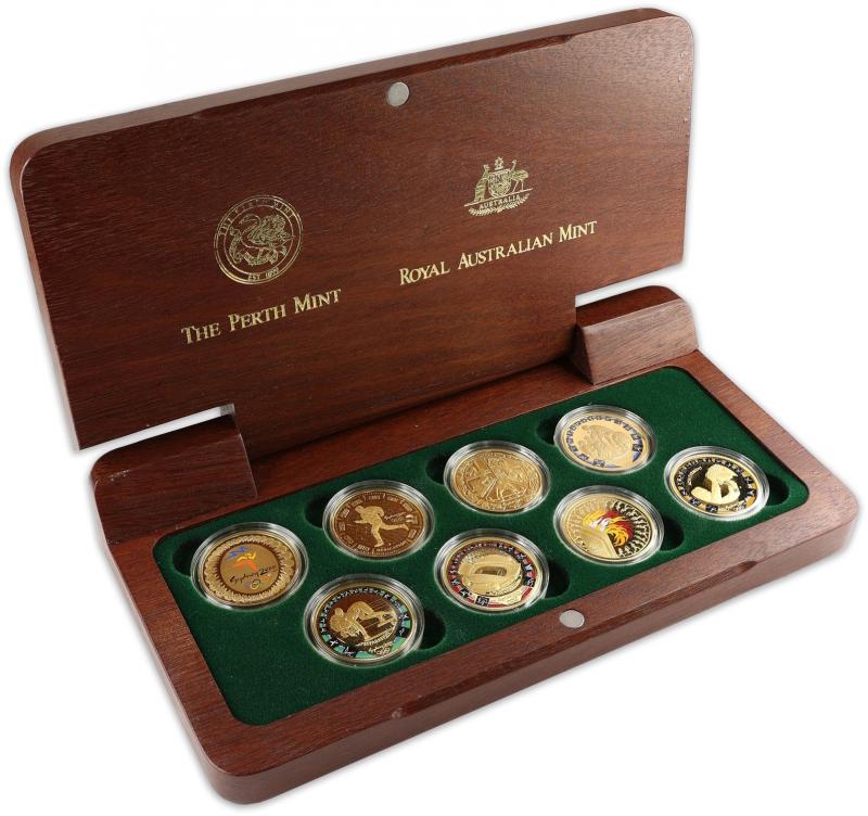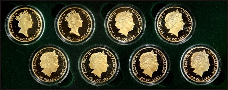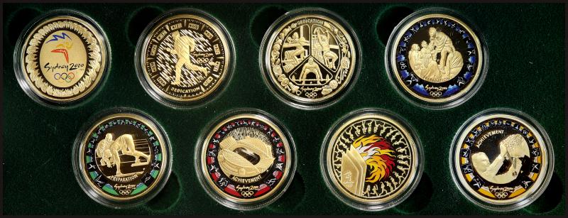 The Sydney 2000 Olympic Gold Coin Collection $100 (10.021g, 0.999) coloured set of eight Proofs cased with certificates and