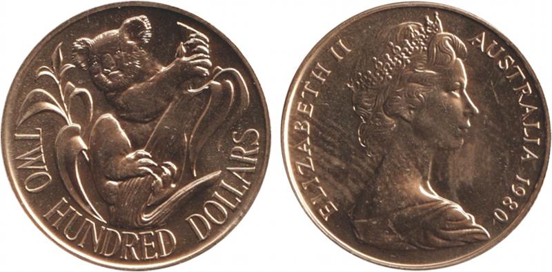 $200 gold (10g 0.916) 1980 Koala reverse in blue vinyl pouch, Uncirculated. (Image1) (Image2)