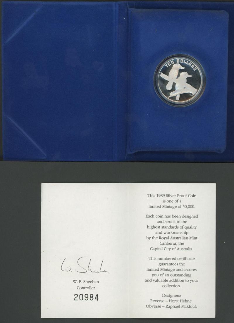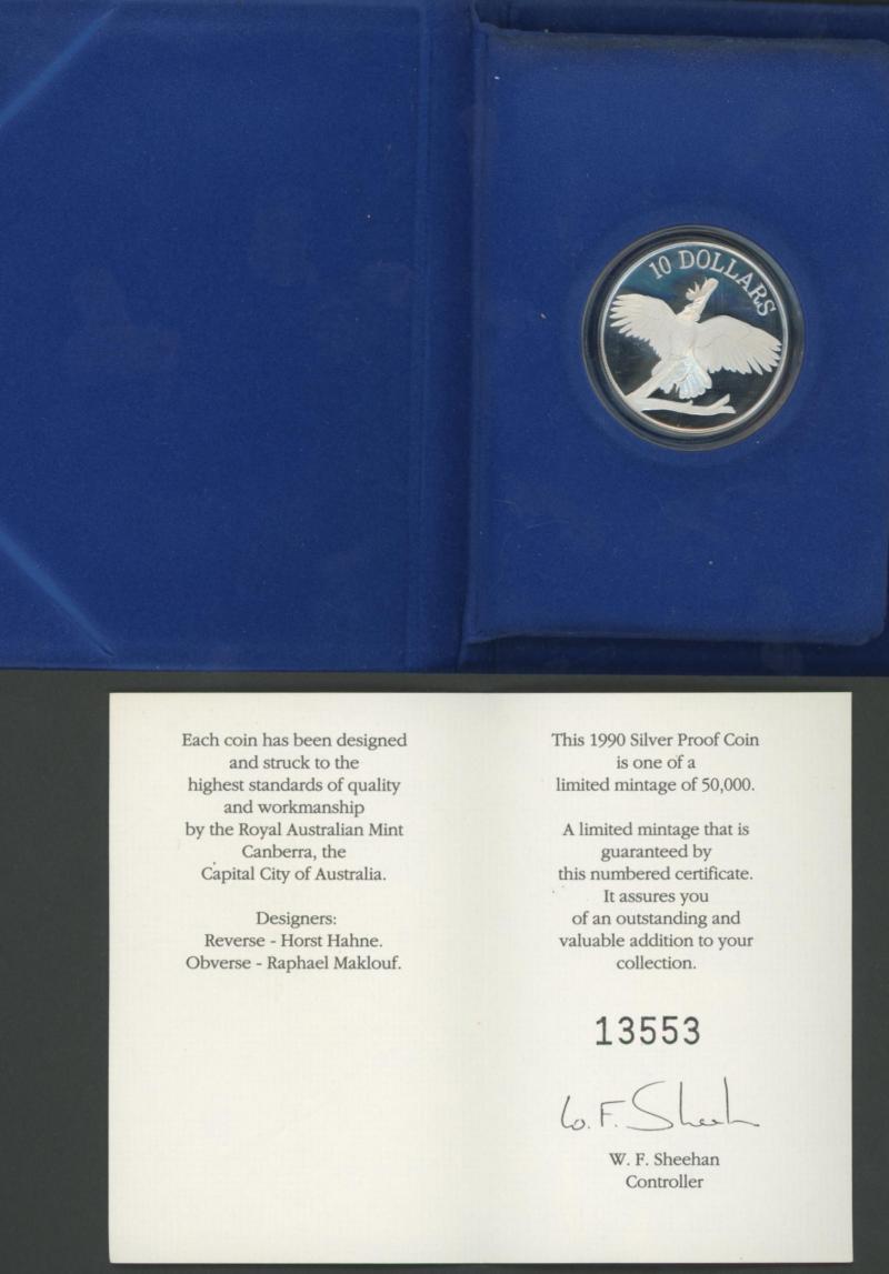 silver $10 (20g 0.925) Birds 1989 & 1990; (total asw 114g). all with no outers and damaged packaging. (6; 1 gold, 5 silver) (Image1) (Image2)