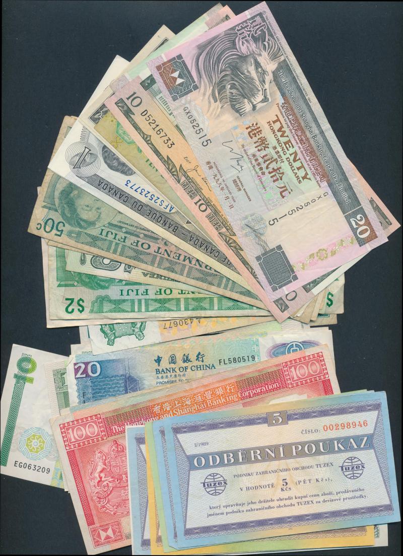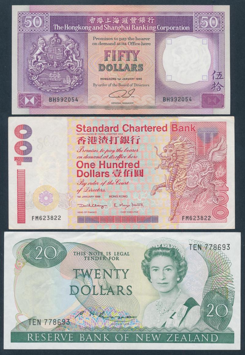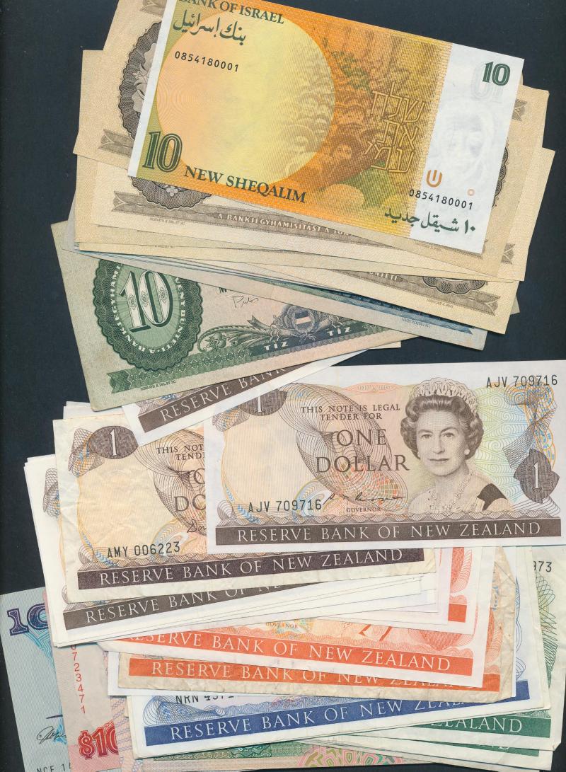 (12) to $100 Chartered Bank & HSBC, Hungary (17) 1960s-80s to 1000 forint, New Zealand (22) 1980s to $20 Russell (x6), Scotland 1987 £10 Risk/Pattullo Callaway & Murphy 116c run of three, also notes from Bahrain, Canada, China, Egypt, Fiji, Greece,