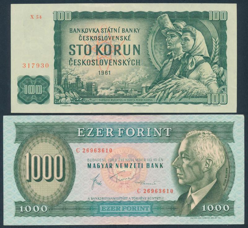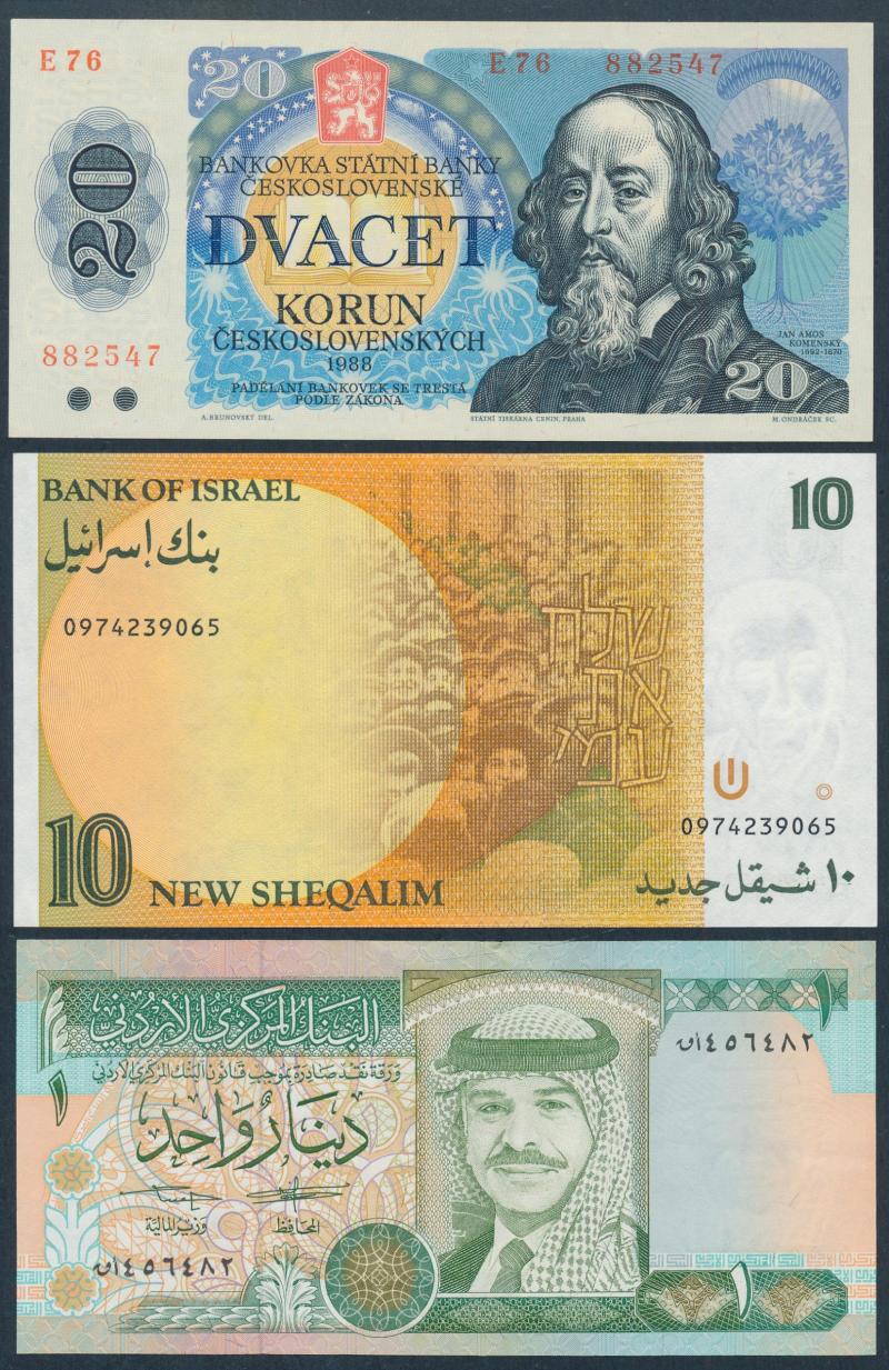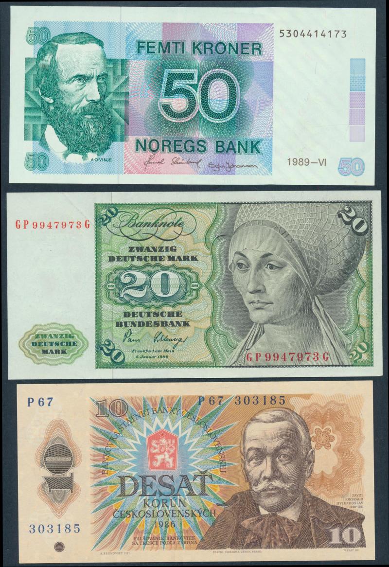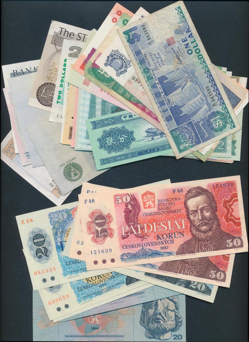 World in box with Czechoslovakia (24) 1960s-80s, France 1990 10f & 100f, Great Britain (7) including 1988 £10 & £20 Gill, Hong Kong