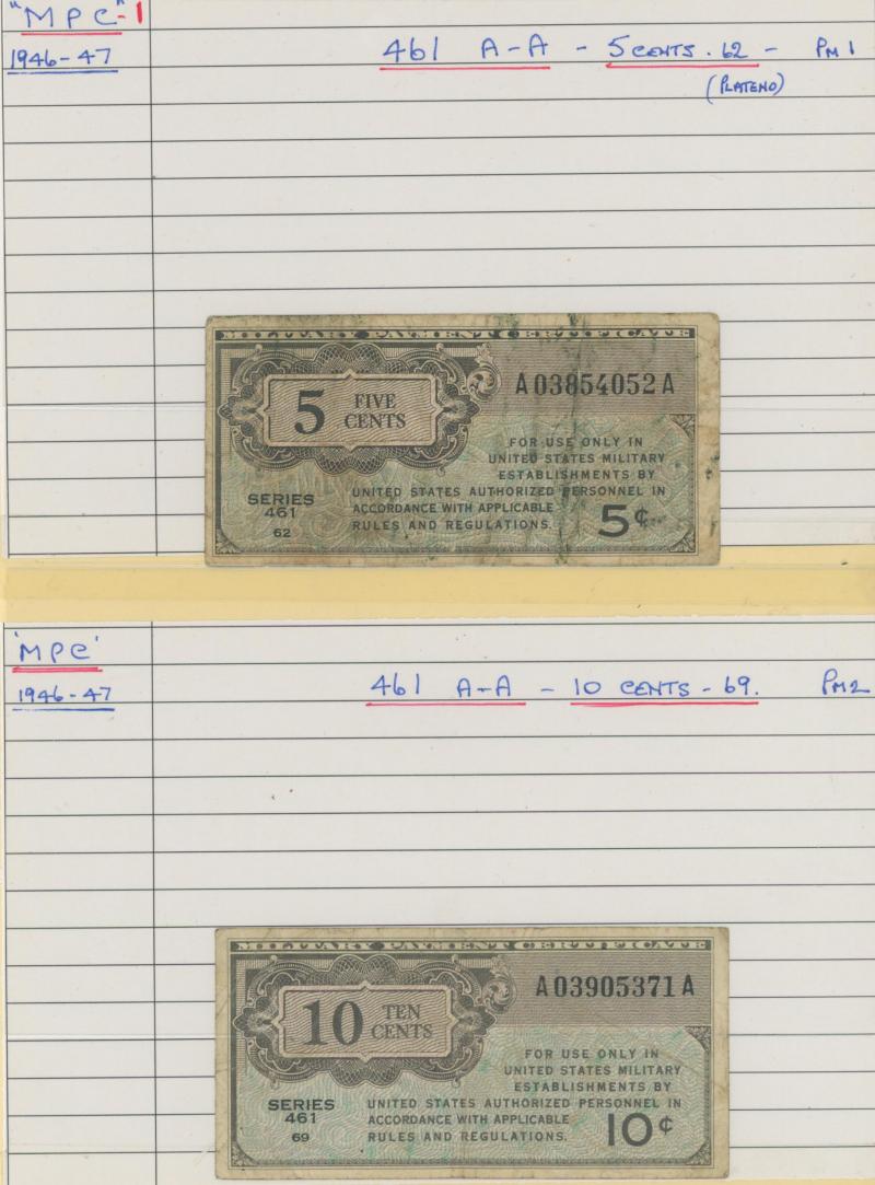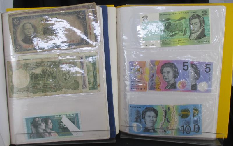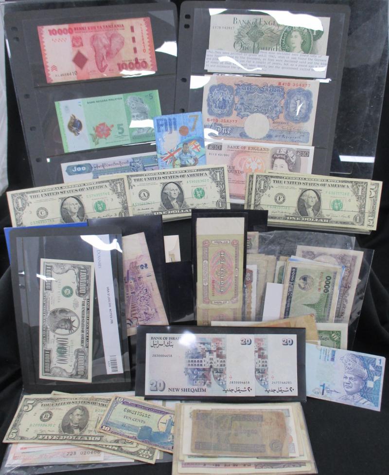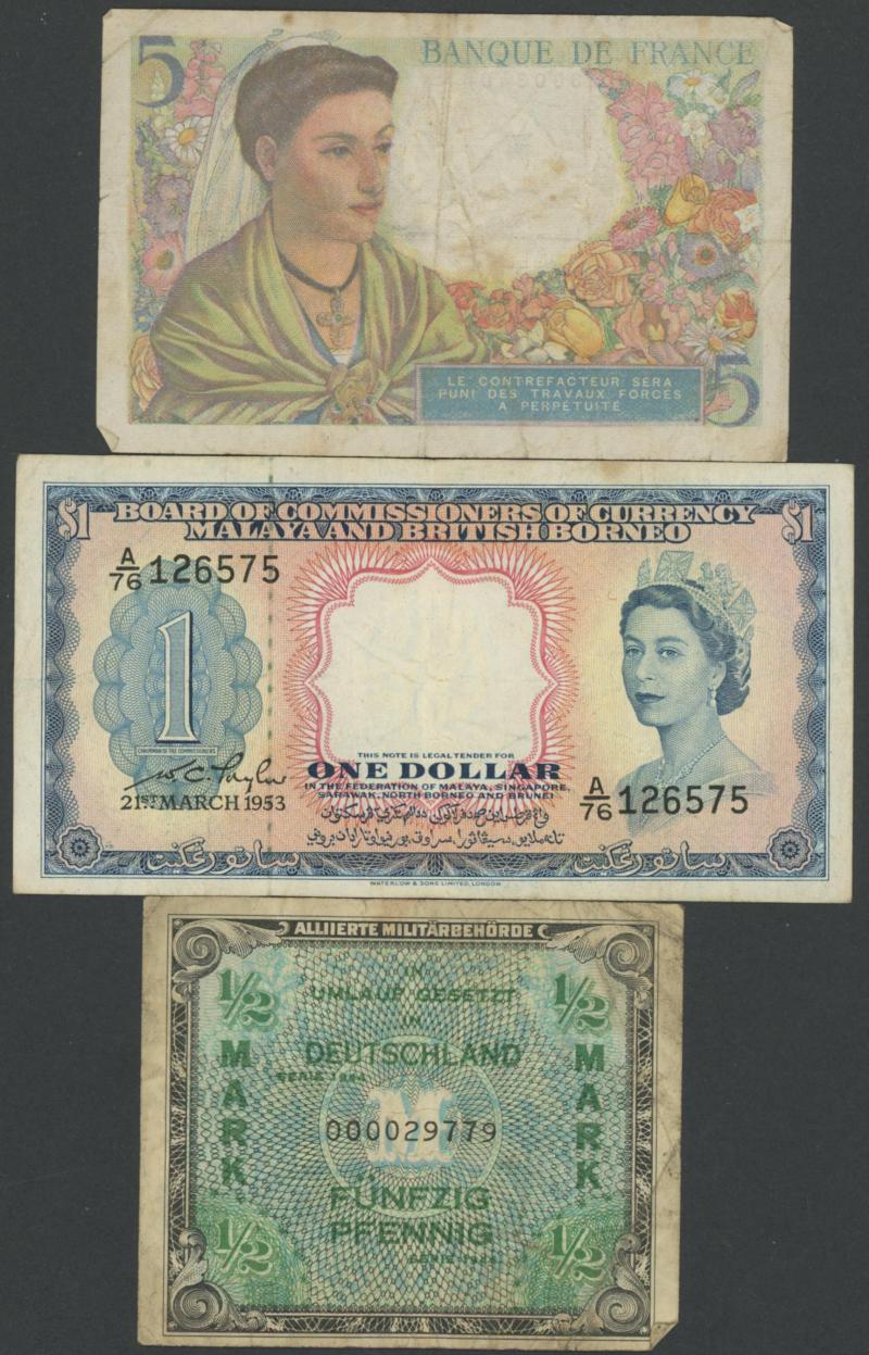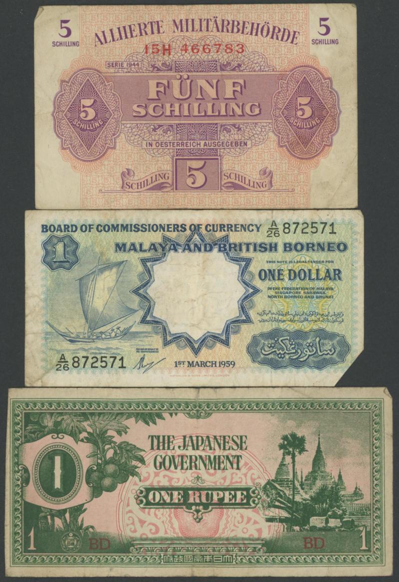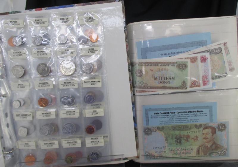 money from France, Germany including WWI military coins and notes, Great Britain Military Authority vouchers including Italy to 100 lira, WWII Allied Military Currency Austria to 100sch, France to 100fr, Italy to 50l, Japanese Occupation issues,