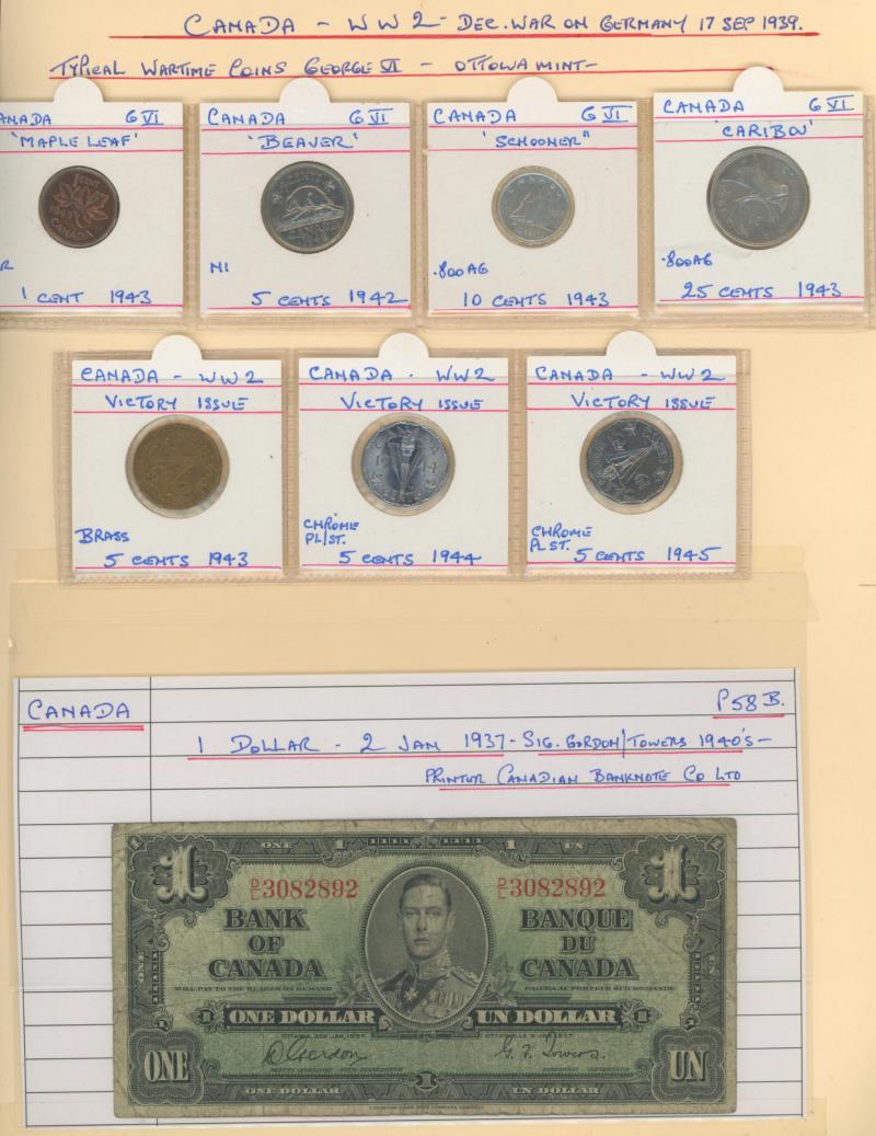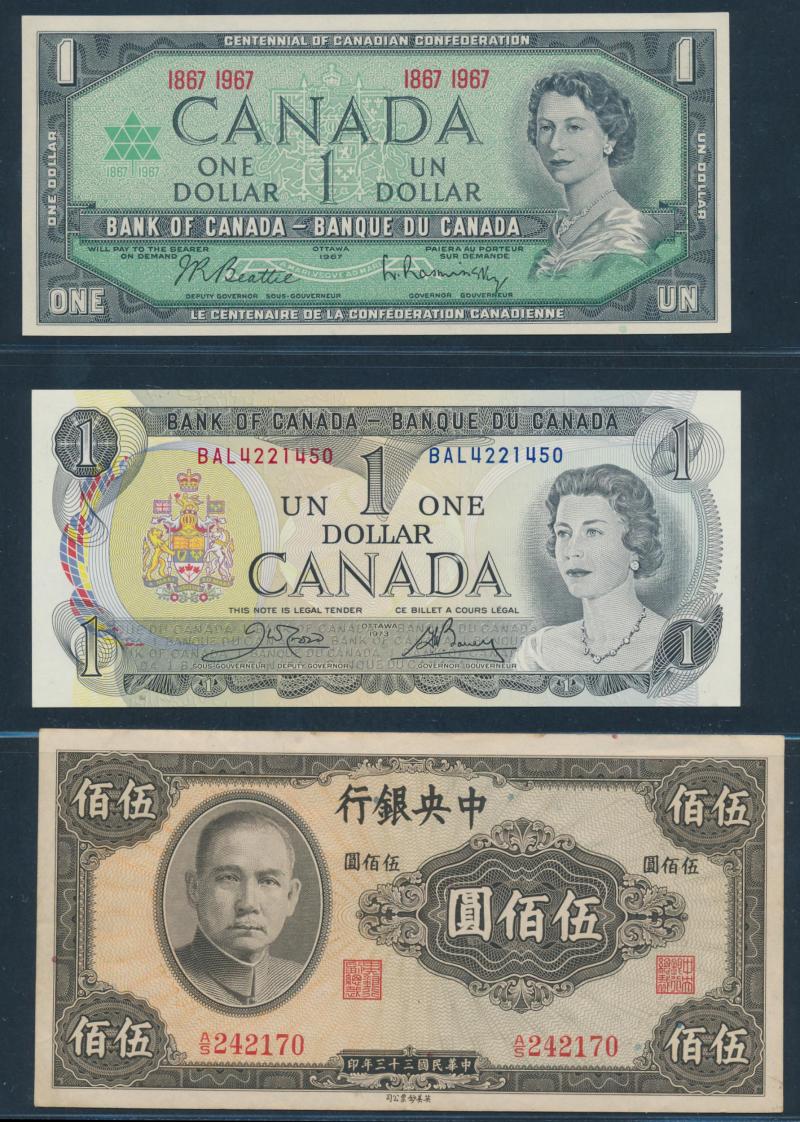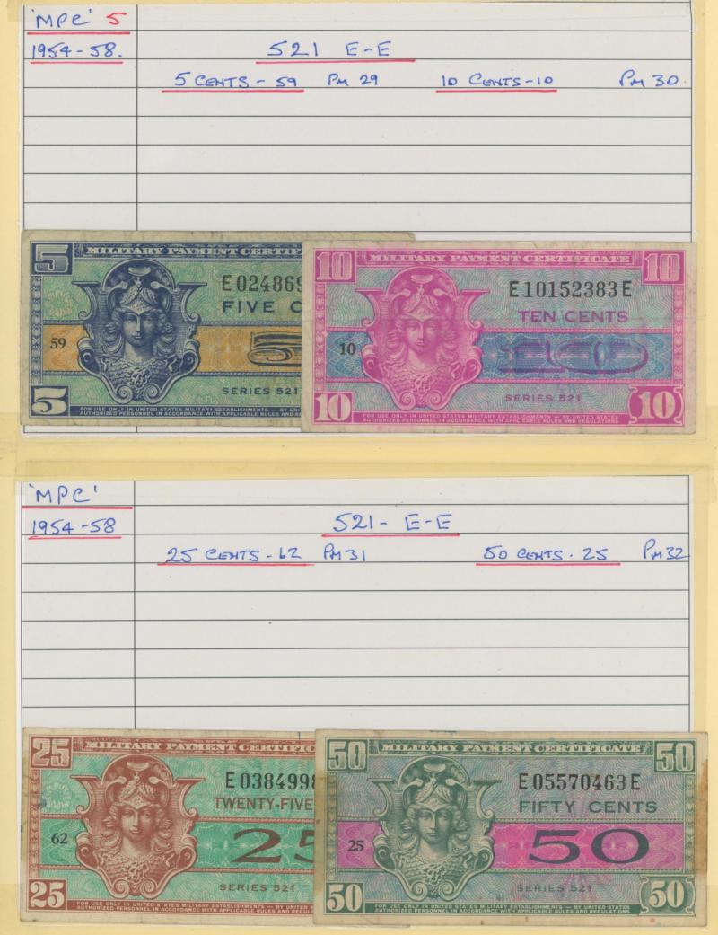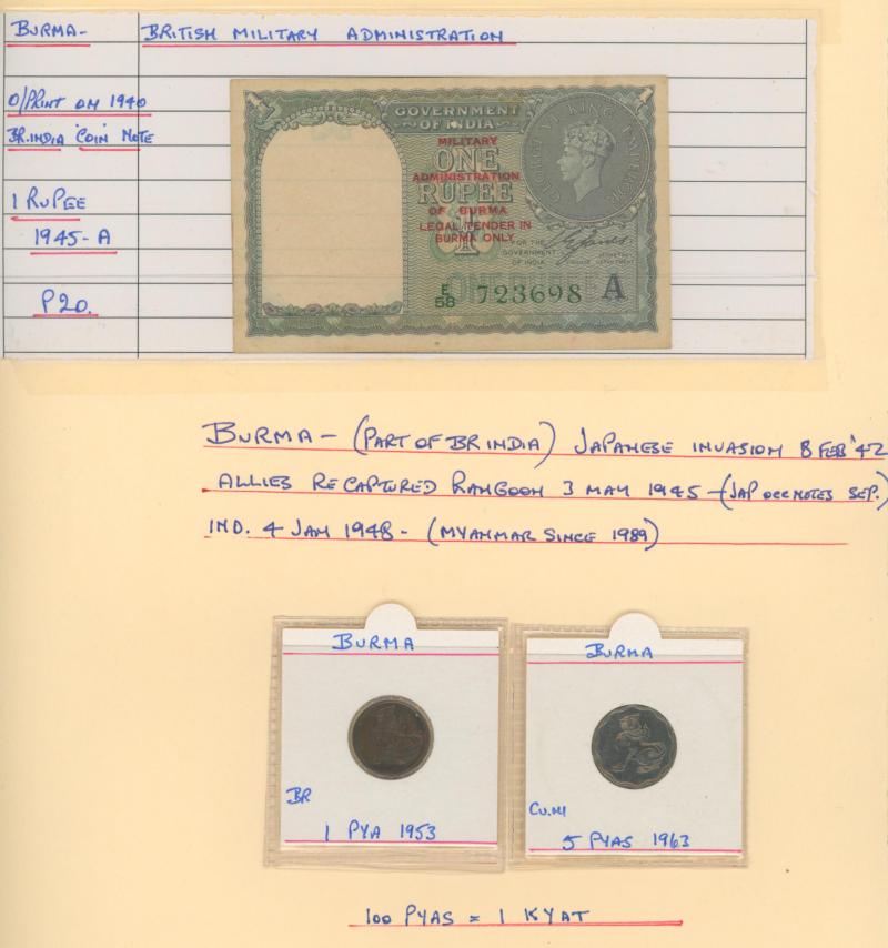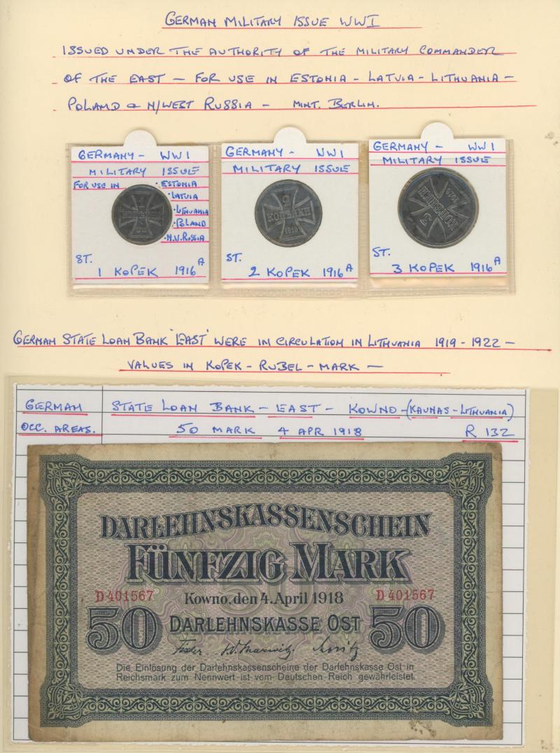 money from France, Germany including WWI military coins and notes, Great Britain Military Authority vouchers including Italy to 100 lira, WWII Allied Military Currency Austria to 100sch, France to 100fr, Italy to 50l, Japanese Occupation issues,