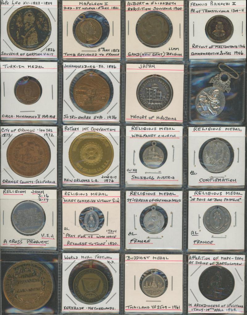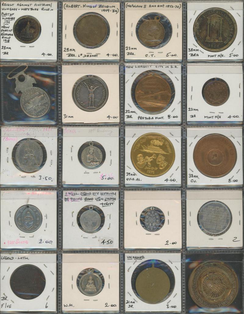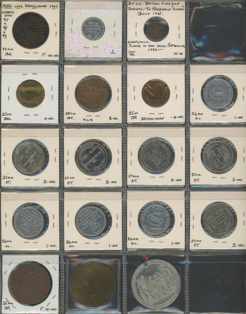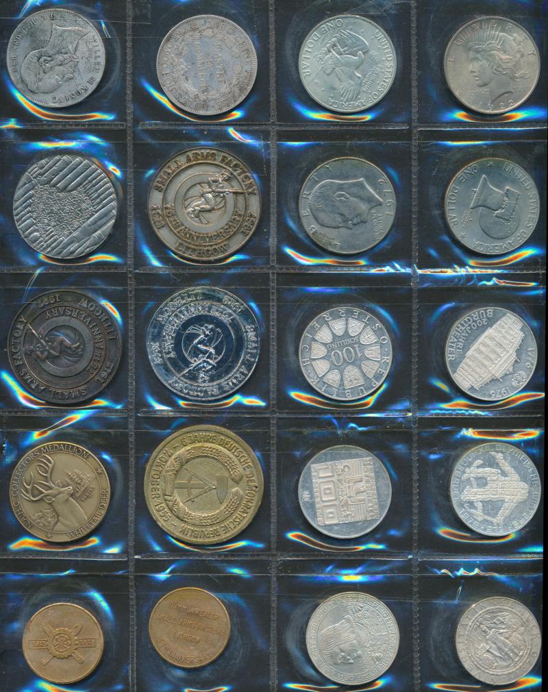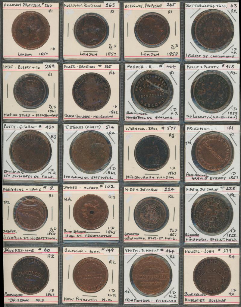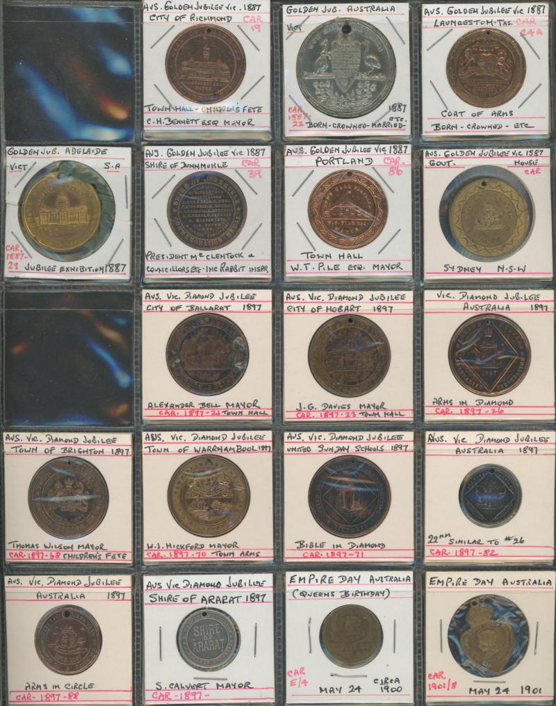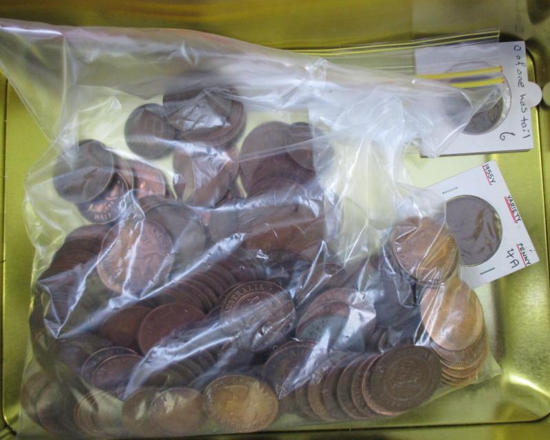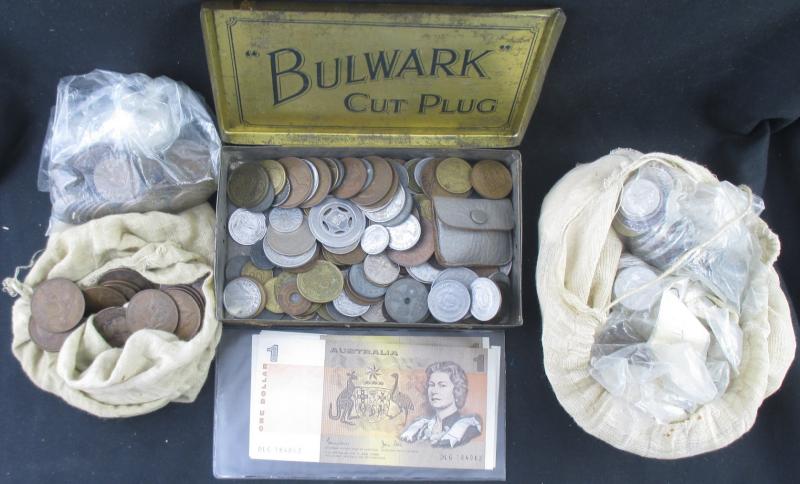 Medallions, coins, and tokens in carton, Australia with trade tokens (polished), bread tokens, gaming tokens, commemorative