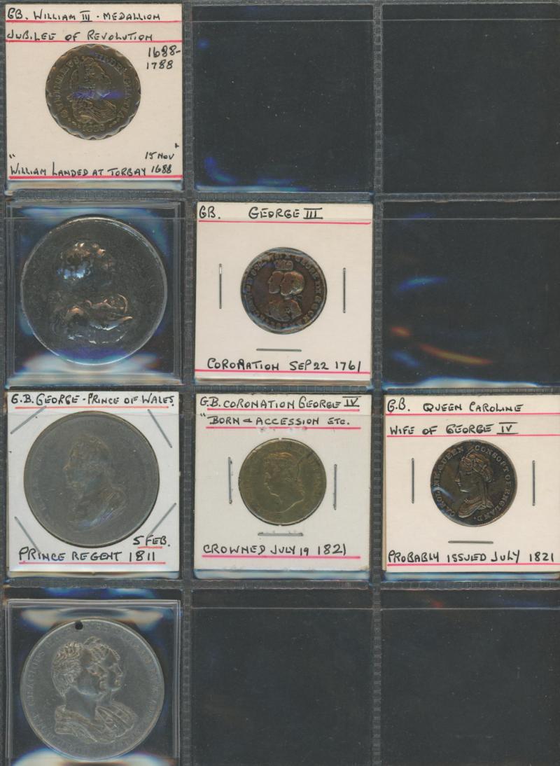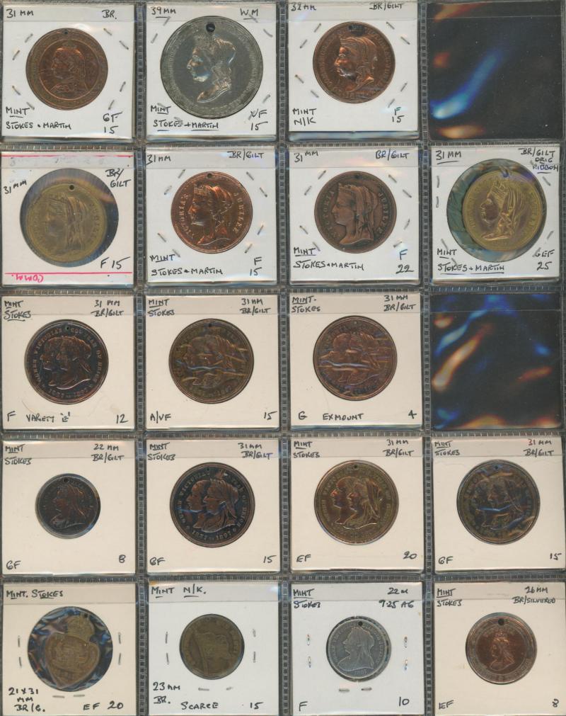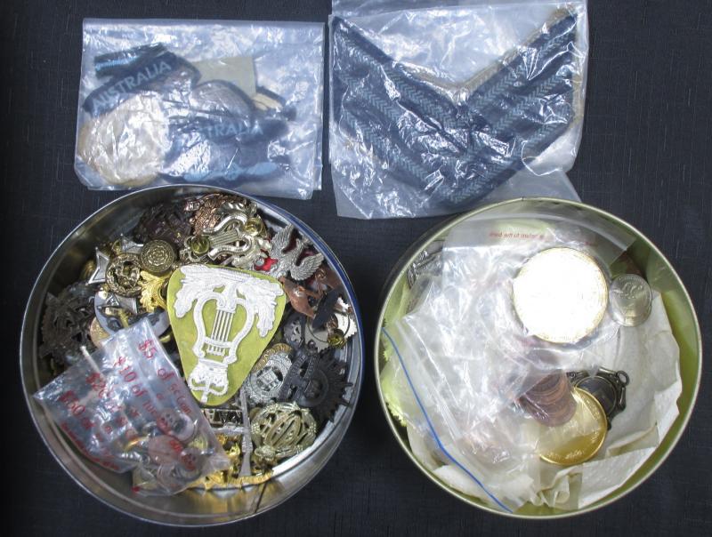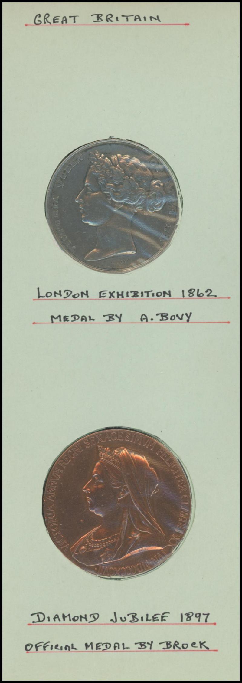 medallions including 1867 Galatea/Prince Albert; Great Britain with 1862 London Exhibition medallion, 1897 QV Diamond Jubilee medallions, vending tokens, etc, miniature coins, tin containing World coins, tin of military insignia, WWI & WWII medals