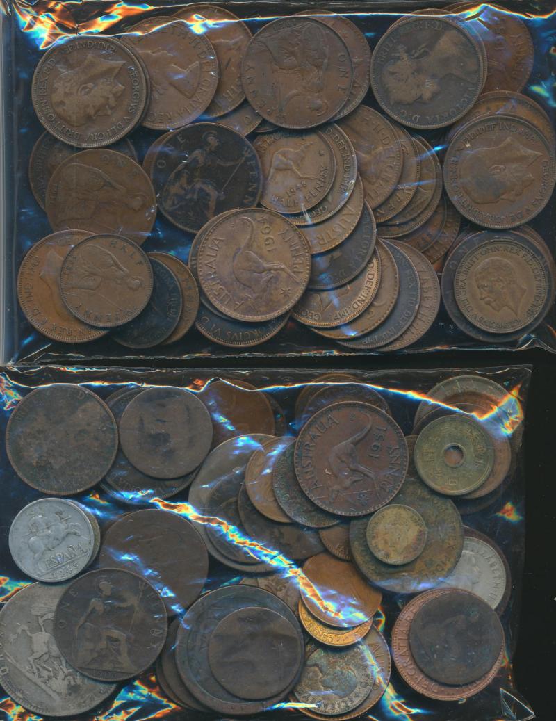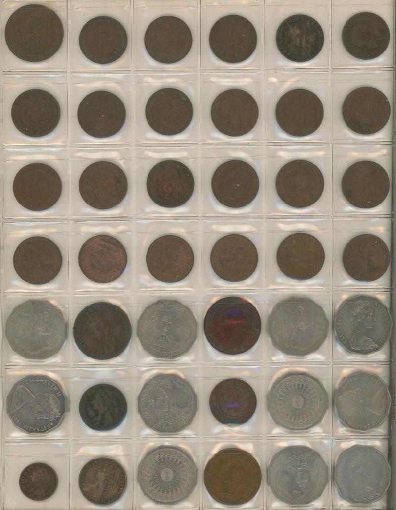 mostly pedestrian with some silver including New Zealand Pre-Decimals to Half-Crown, many of the copper coins have been polished, condition variable. Weighs 43kg.