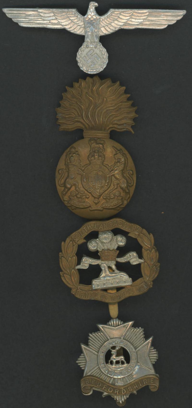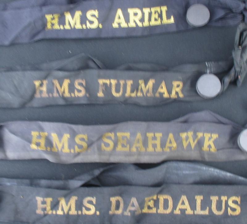 2/6d dates in album; WWII period banknotes (60+) in envelope with Allied Military Money, & Japanese Invasion Money; also box of military insignia, and naval headbands from British ships; condition variable. Weighs 12kg.