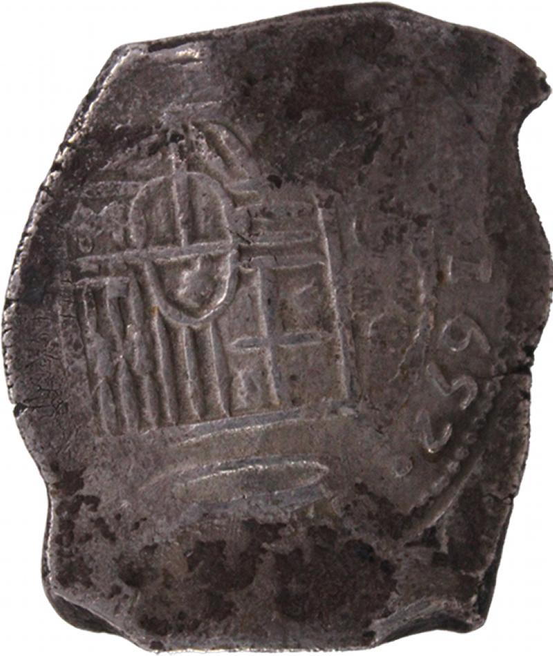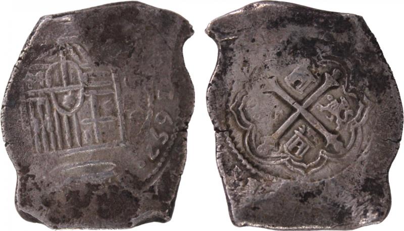 Spanish Colonial 'Cob' Eight Reales 1652 Philip IV silver (26.43g) KM 45, obv. crowned Arms, rev. cross dividing lions and castles,