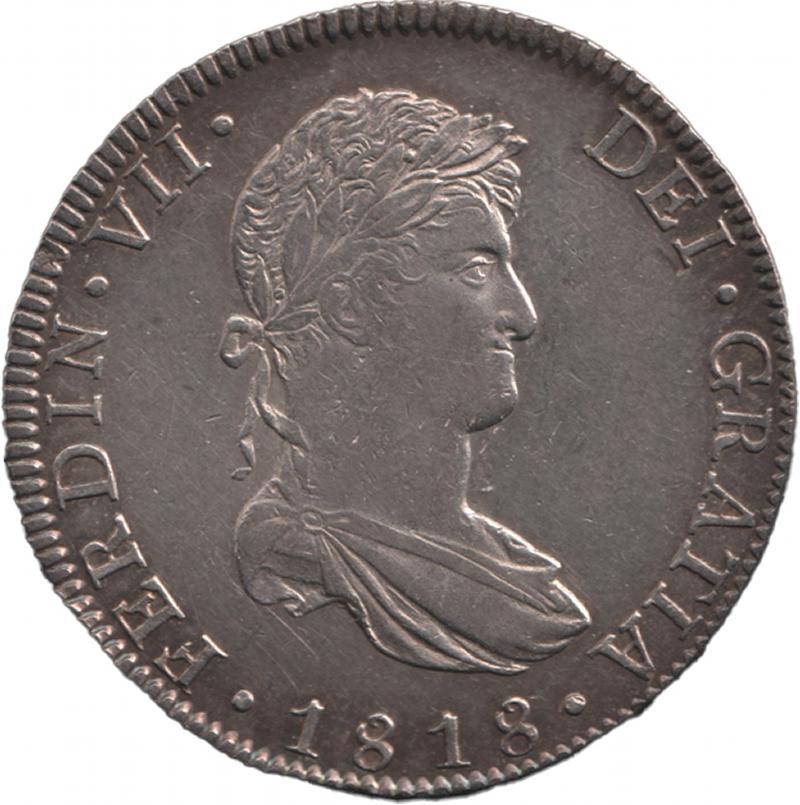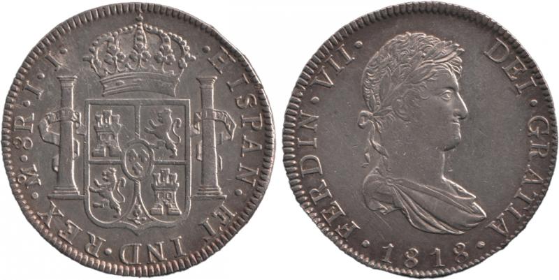 Spanish Colonial Eight Reales 1818 Ferdinand VII silver (26.99g) KM 111, mintmark 'Mo J.J.' Mexico City Mint, EF. (Image1) (Image2)