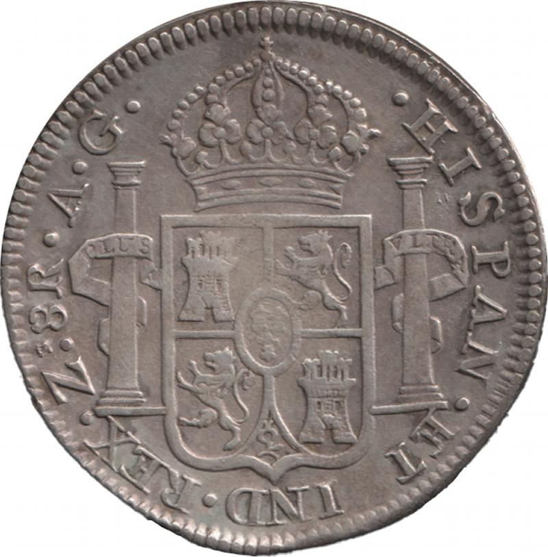 Spanish Colonial Eight Reales 1820 Ferdinand VII silver (26.56g) KM 111.5, mintmark 'Z A.G.' Zacategas Mint, gVF/aEF. (Image1) (Image2)