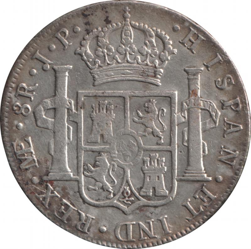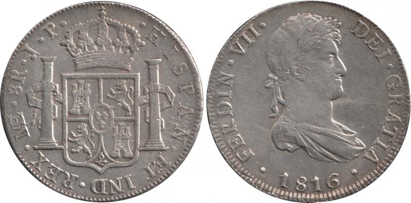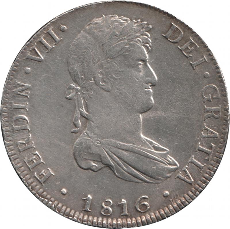 Spanish Colonial Eight Reales 1816 Ferdinand VII silver (27.25g) KM 117.1, mintmark 'LIMAE J.P.', VF. (Image1) (Image2)