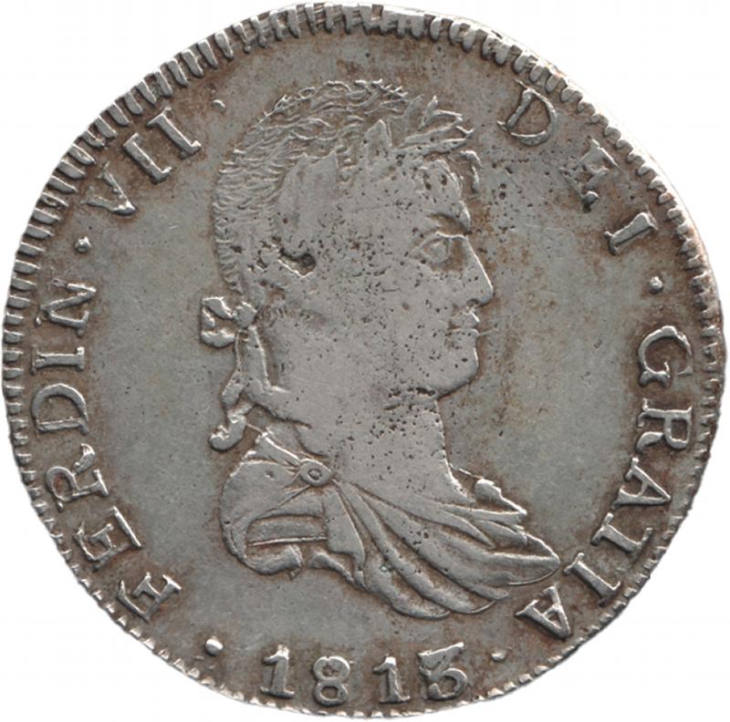 Spanish Colonial Eight Reales 1815 Ferdinand VII silver (26.48g) KM 111.3, mintmark 'Ga M.R.' Guadalajara Mint, gFine. (Image1) (Image2)
