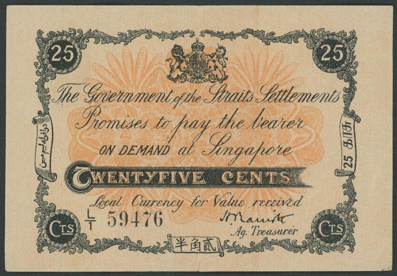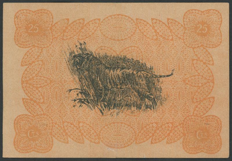 1917 Emergency Issue 25c black and orange 'Marriot' Pick 7, Tan S7, serial 'L/1 59476', rev. tiger in grassland, vertical centre