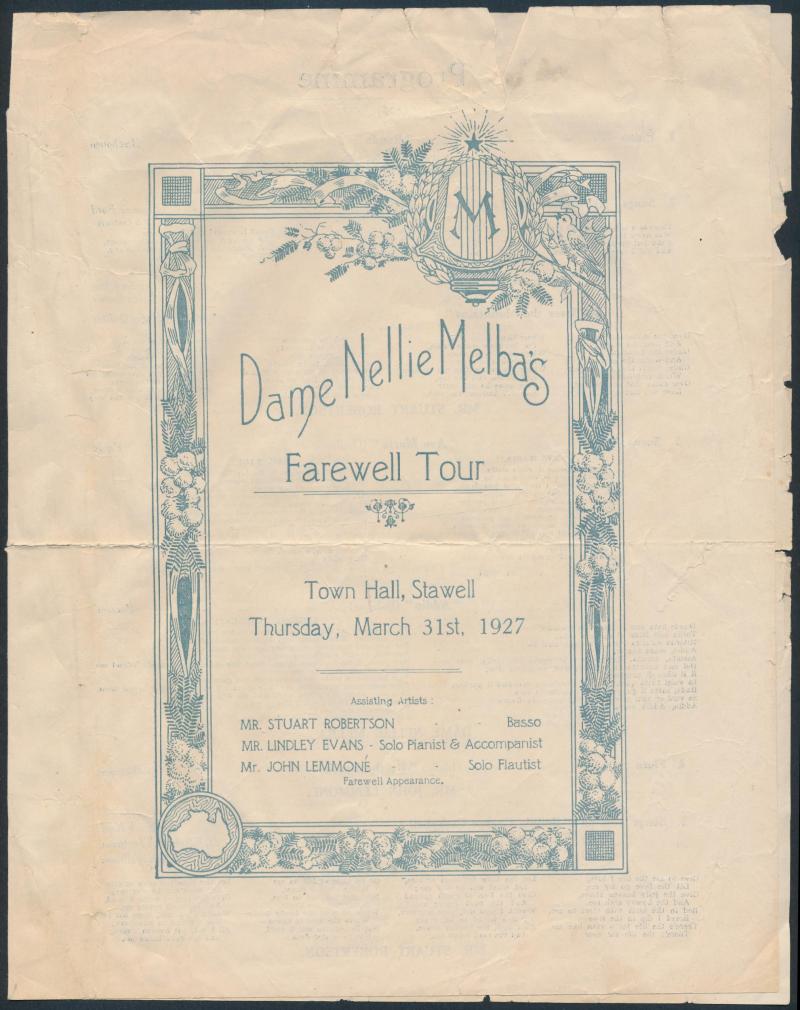 tin box; 18ct gold tie pin; Beatles group with LPs (3), Mobil Beatles advertising card & book 'The Beatles Get Back'; ephemera with 1927 programme 'Dame Nellie Melba's Farewell Tour, Town Hall Stawell' & 1925 'Souvenir of the Opening of the