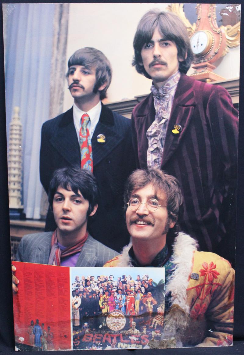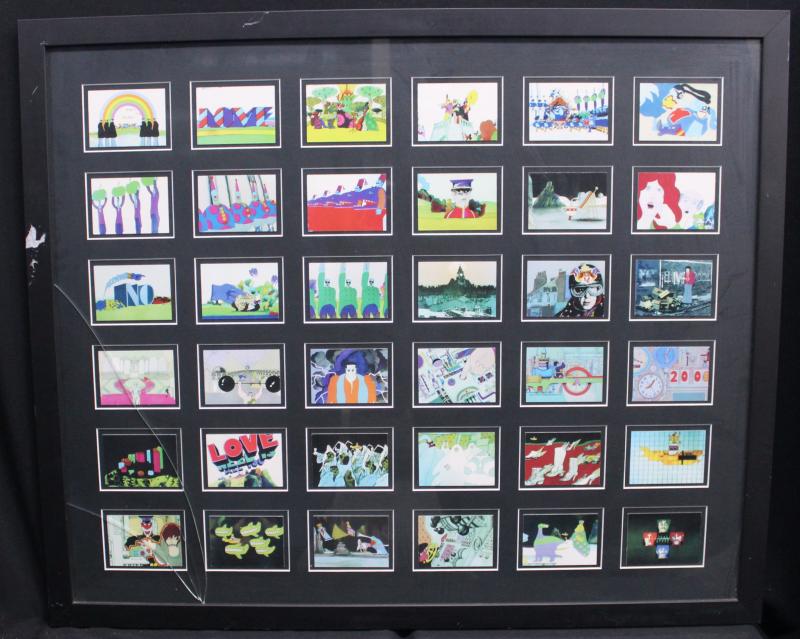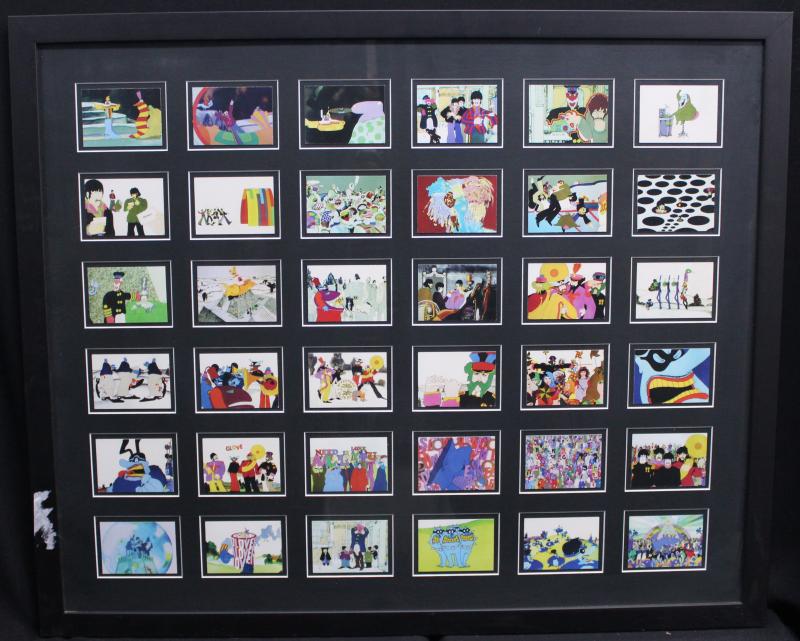 Posters/Displays comprising 'Beatles - Yellow Submarine' cards (72) in two frames; 'Yellow Submarine' poster; Beatles poster; golf