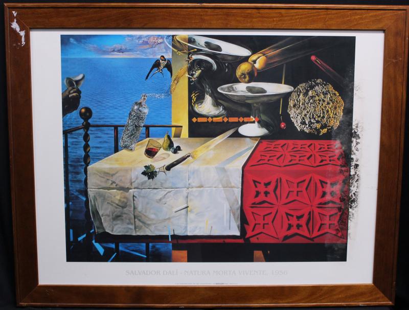 display; 1937 Coronation cards; 'Alice in Wonderland' (Johnny Depp) poster; Salvador Dali print, all framed, various sizes, Fair condition.