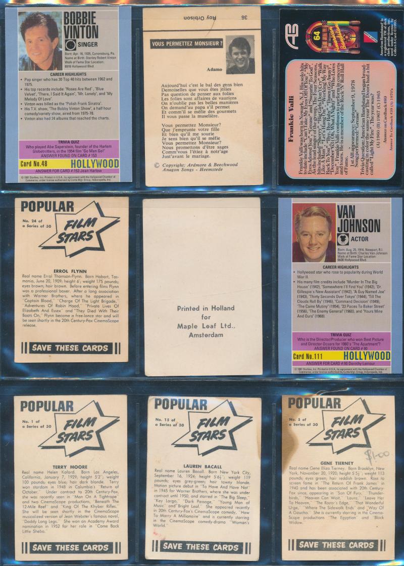 Richard, Ricky Nelson, Paul Anka, Fabian, Frankie Valli, Elizabeth Taylor, James Cagney, Audrey Hepburn, William Holden, Paul Newman, Ava Gardner & Anthony Perkins, mainly Fine. Purchased by the vendor in various ebay auctions from the US, UK &