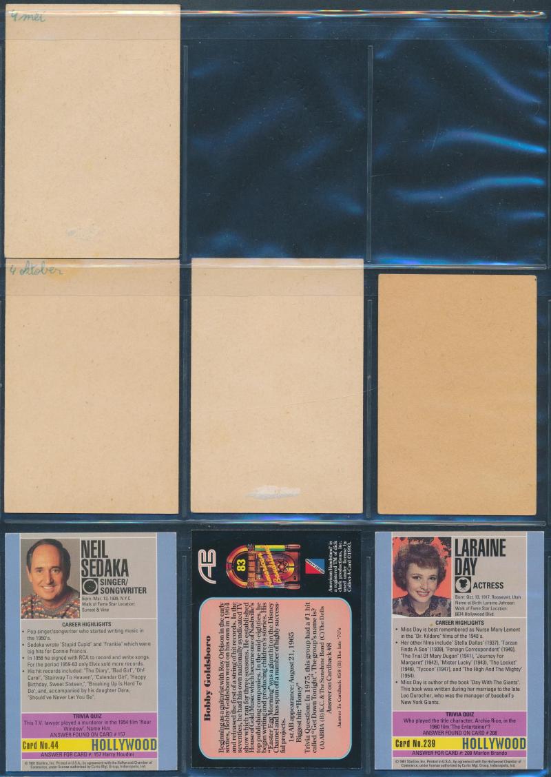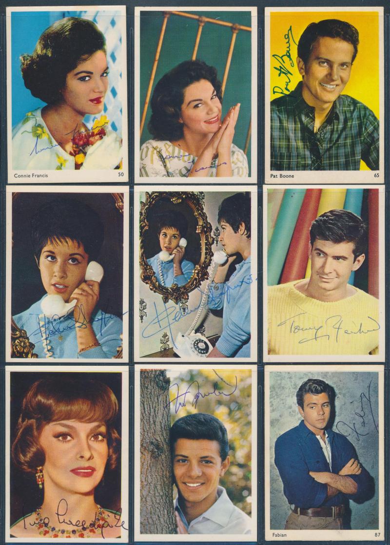MOVIE & MUSIC STARS: 1960s-80s trade cards signed (50) & unsigned (22) with signatures including Elvis Presley, Roy Orbison, Cliff