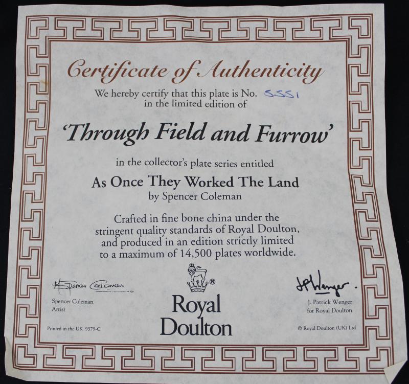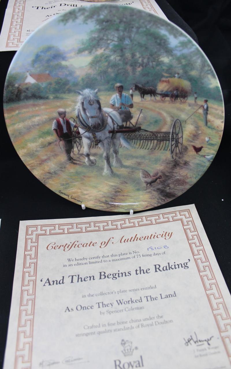 Plates Royal Doulton 'As Once They Worked the Land' with artwork by Spencer Coleman, set of 8 plates, plus special large plate,