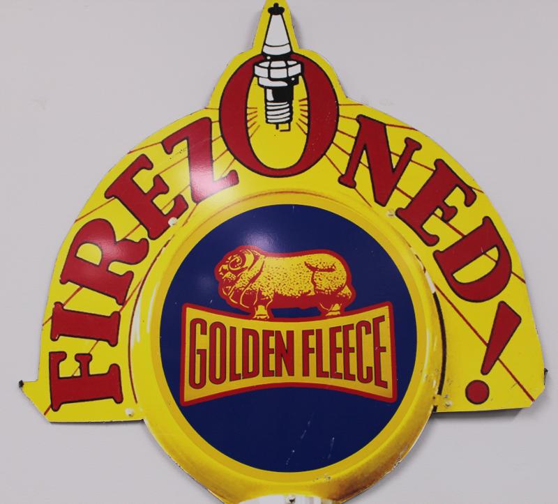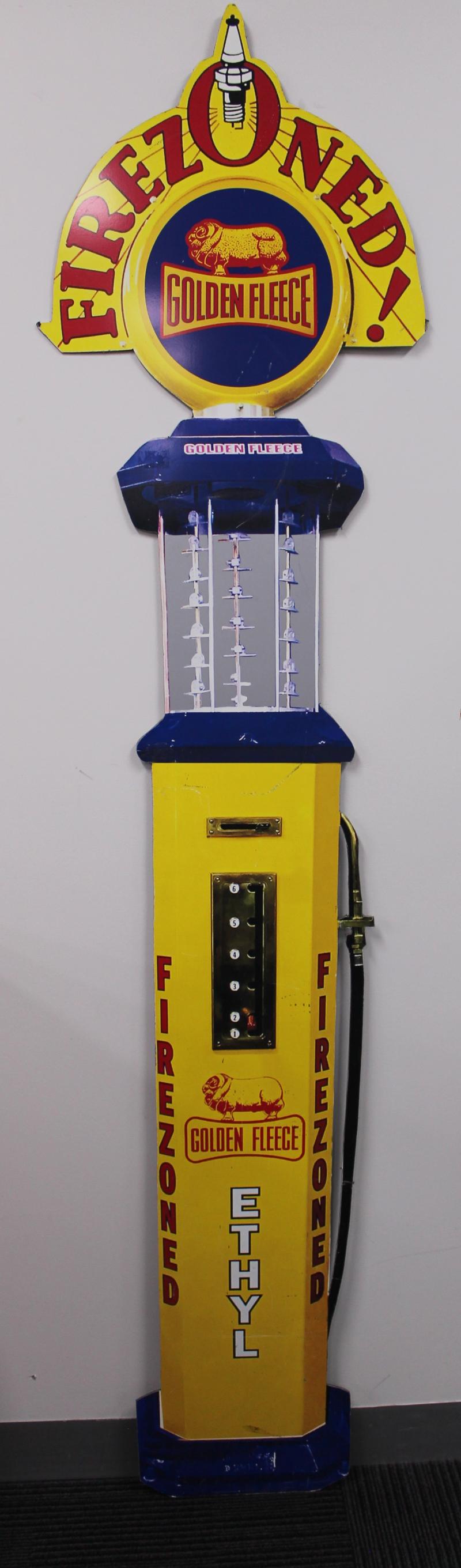 Sign replica Golden Fleece sign in the shape of an antique petrol pump, 197cm tall. (Image1) (Image2)