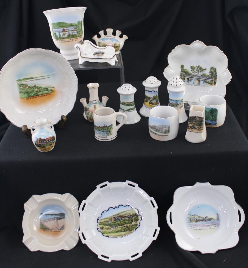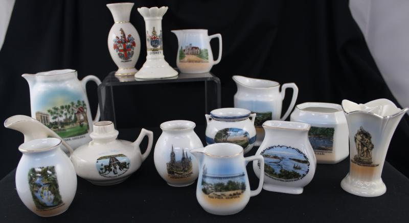 Tourist Ware collection of ceramic vases, jugs, pots, plates, ashtrays, thimbles & mini-tankards, made in Czechoslovakia, England &