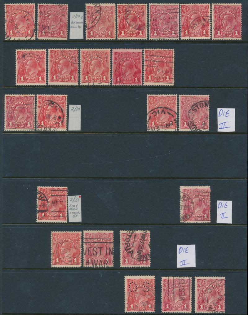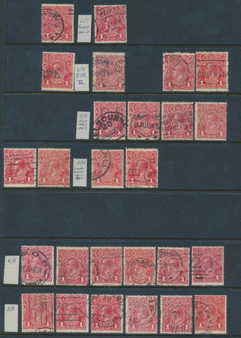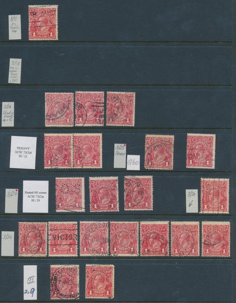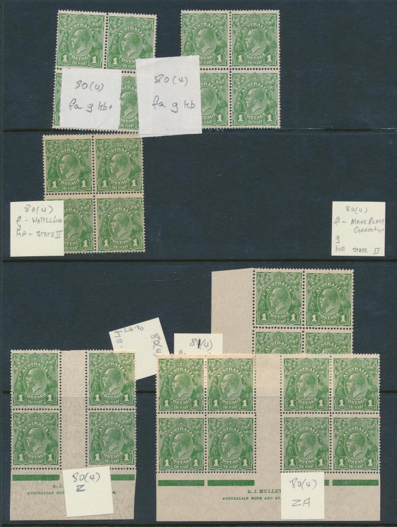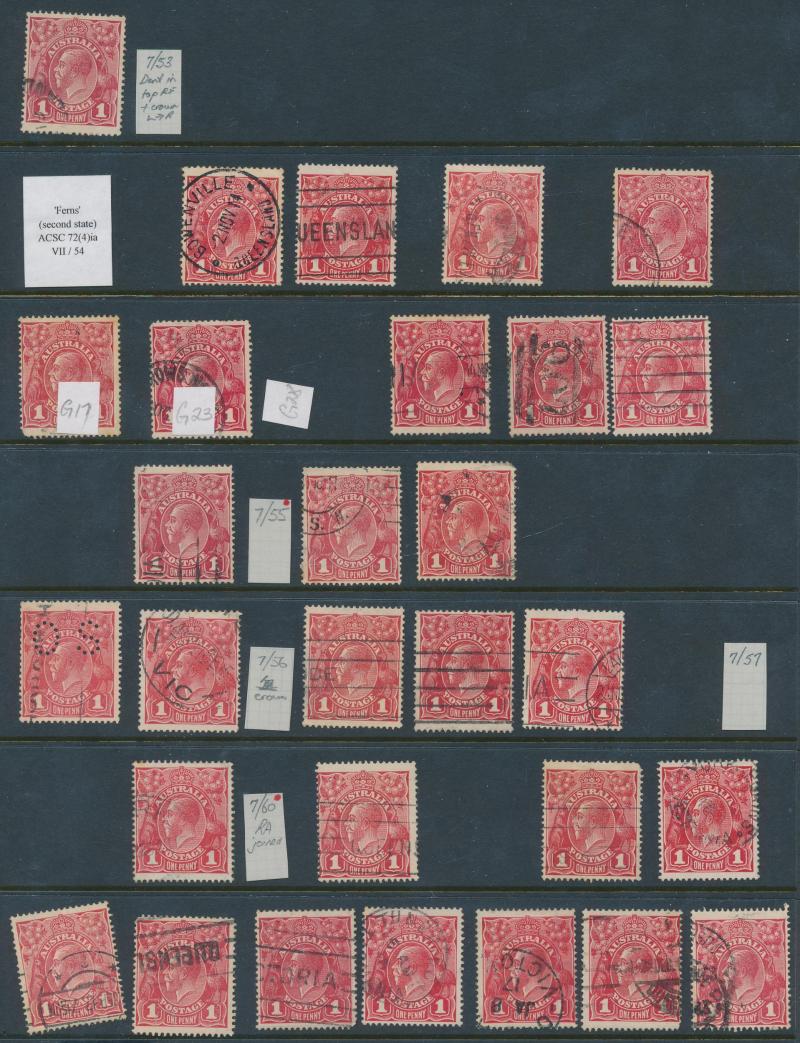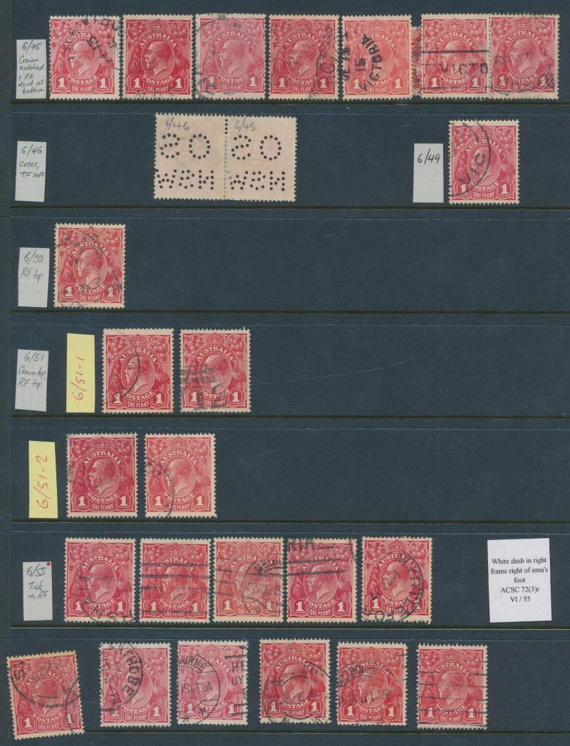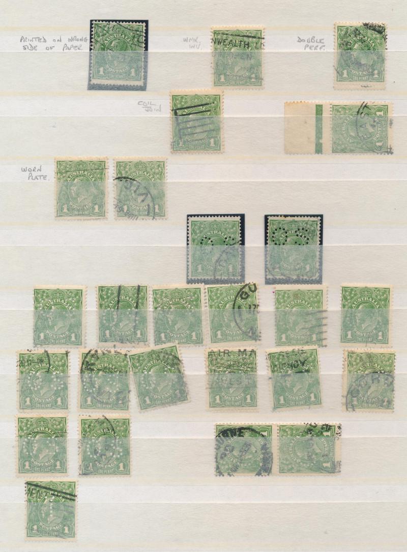 replaced it, No Wmk Obliterated 'AL' of 'HALFPENNY', etc, also a detailed study of Electro 13 & 14 Worn Upper Frames, also lots of other multiples, Federal & State Government punctures, and unplated examples many with dated cancels & potential