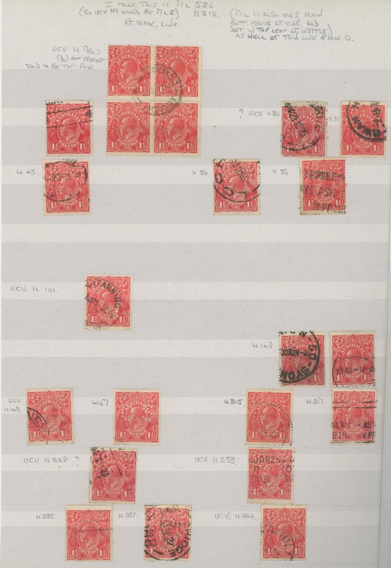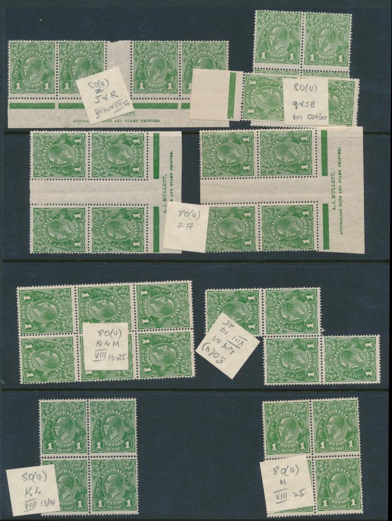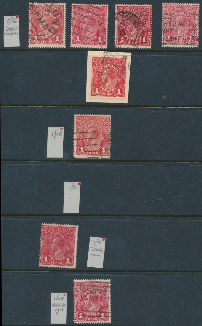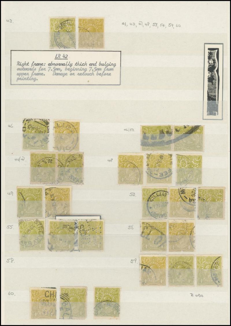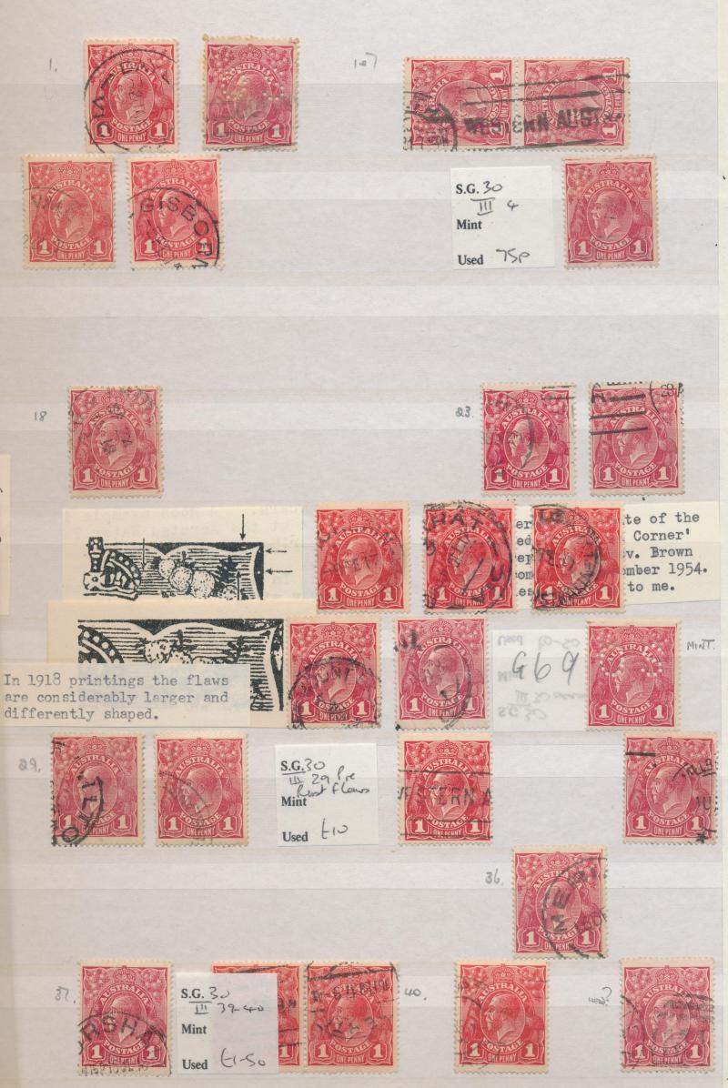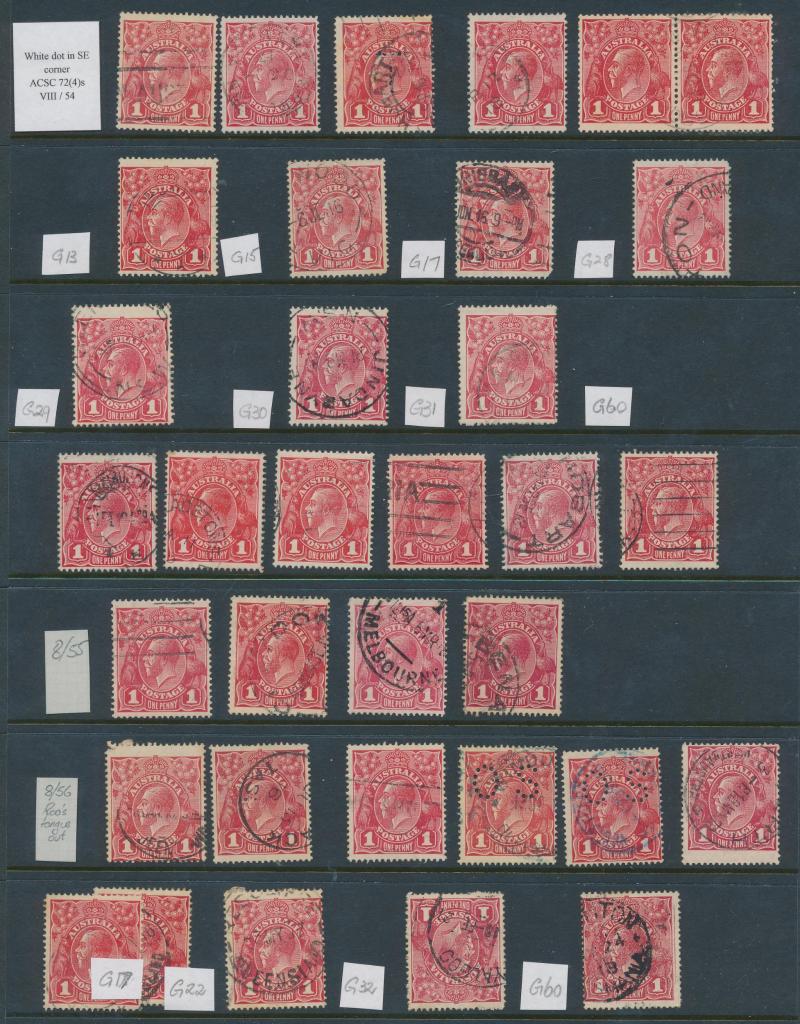 replaced it, No Wmk Obliterated 'AL' of 'HALFPENNY', etc, also a detailed study of Electro 13 & 14 Worn Upper Frames, also lots of other multiples, Federal & State Government punctures, and unplated examples many with dated cancels & potential