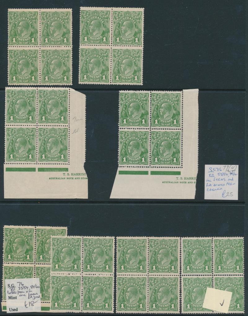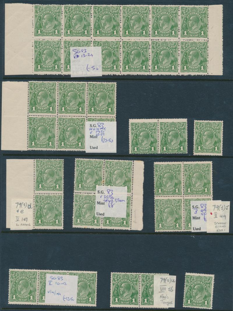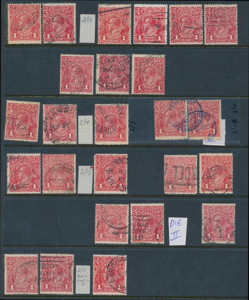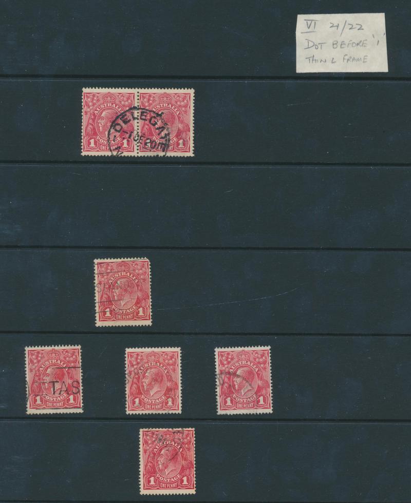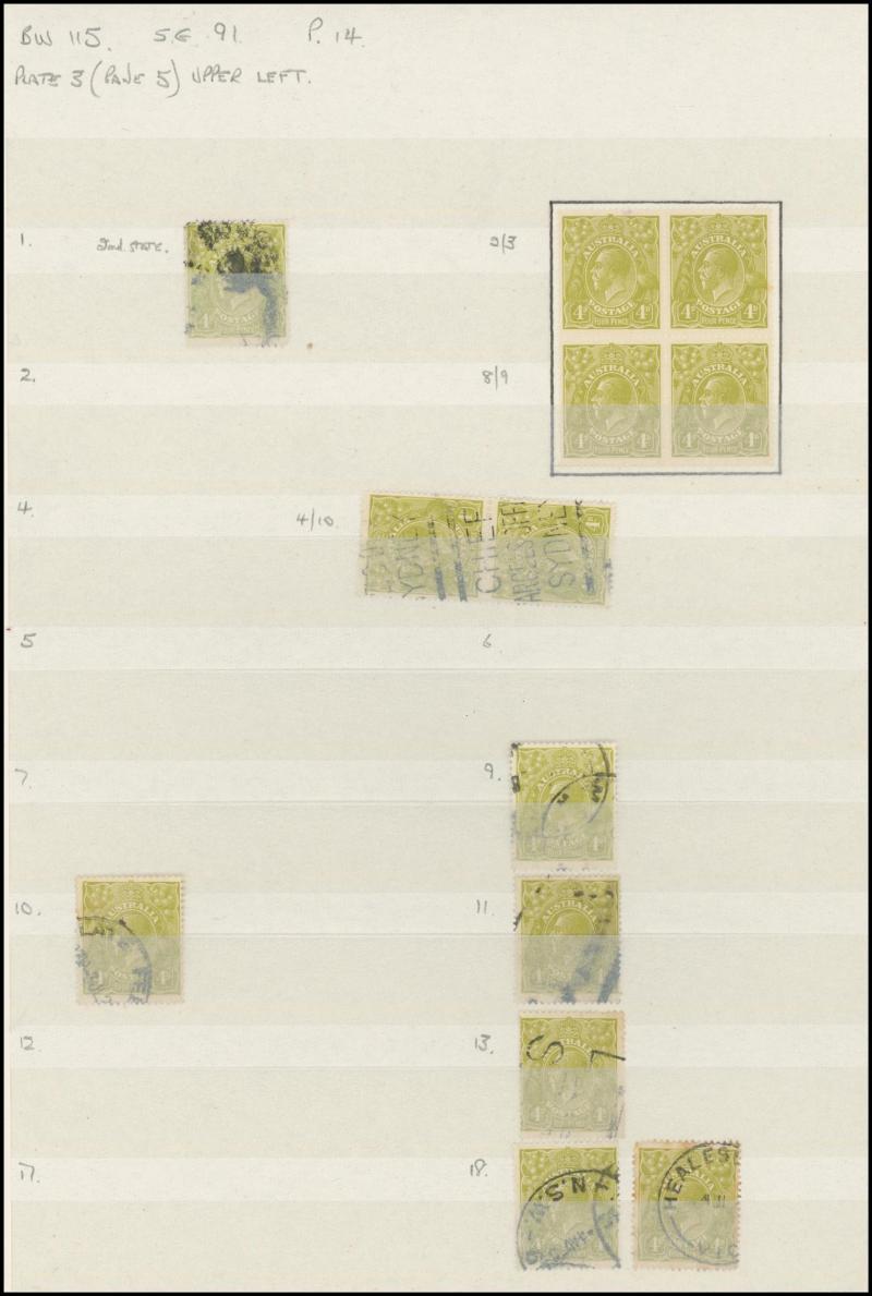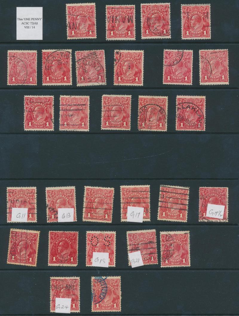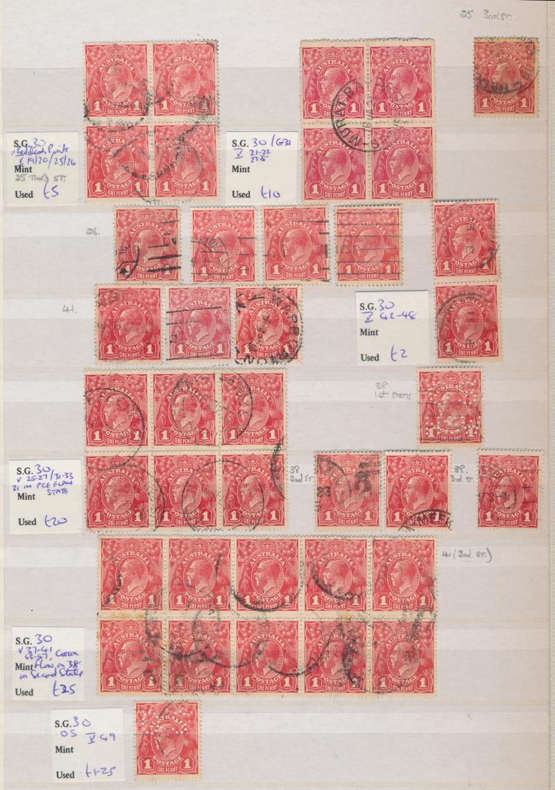 replaced it, No Wmk Obliterated 'AL' of 'HALFPENNY', etc, also a detailed study of Electro 13 & 14 Worn Upper Frames, also lots of other multiples, Federal & State Government punctures, and unplated examples many with dated cancels & potential