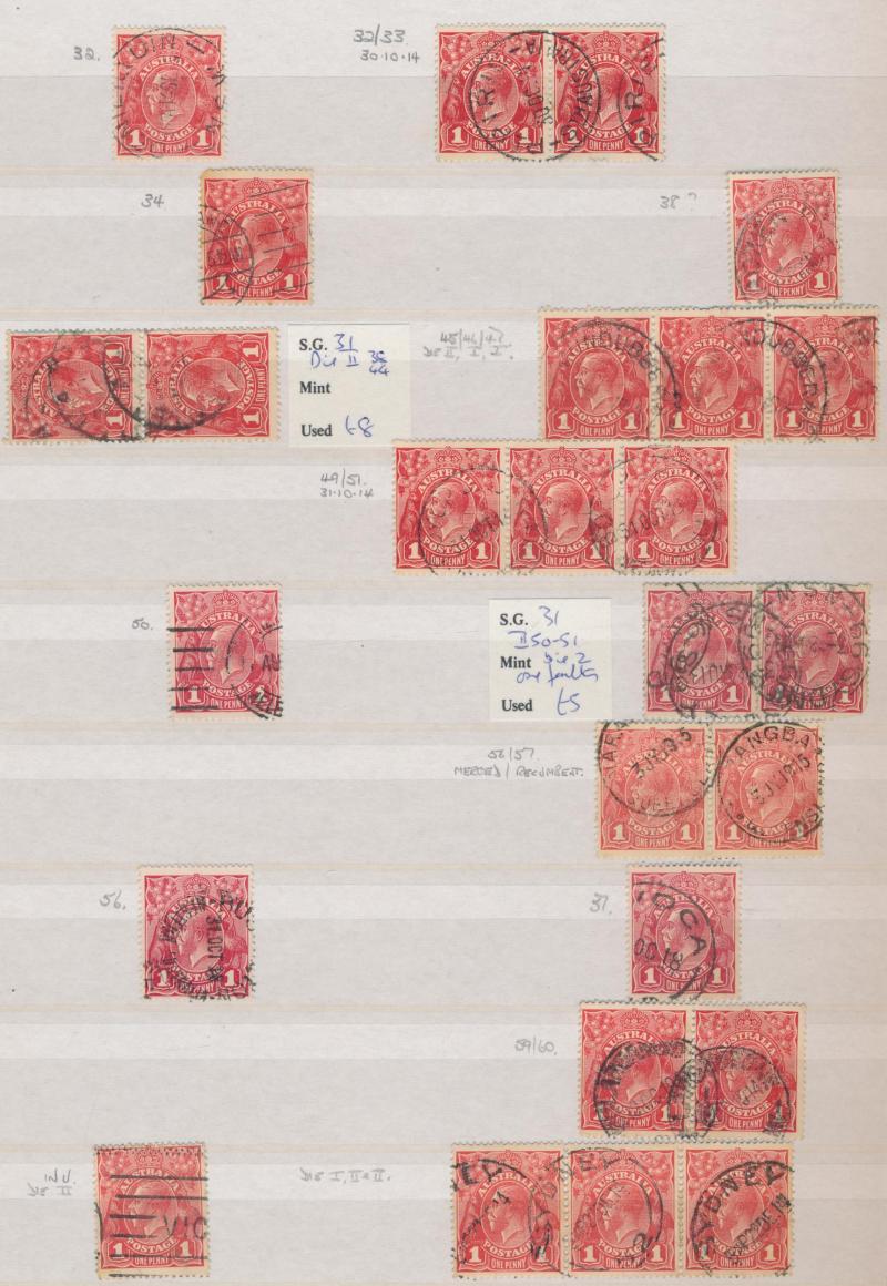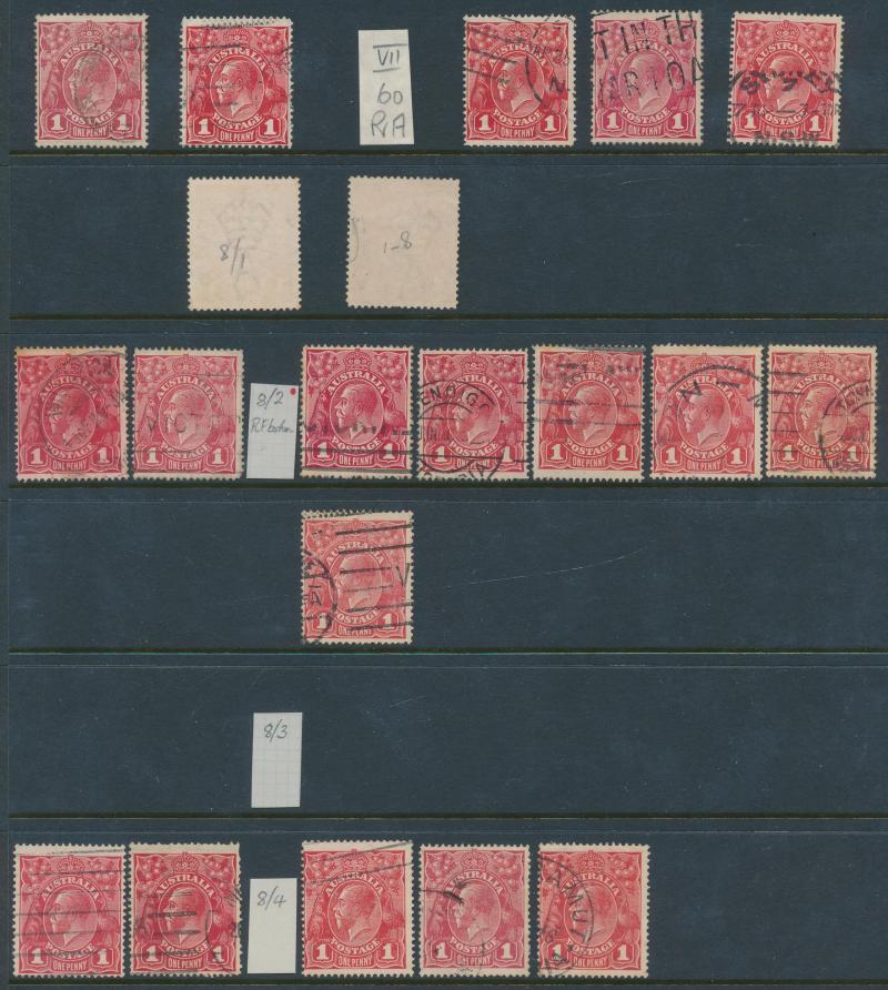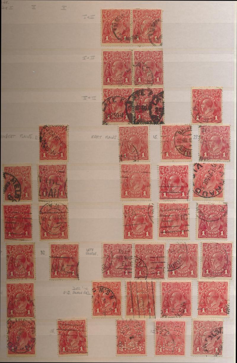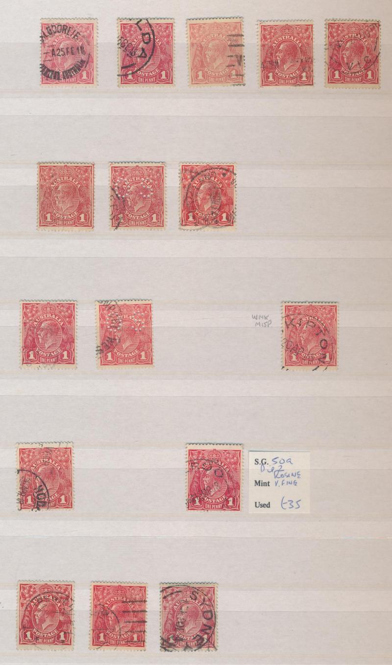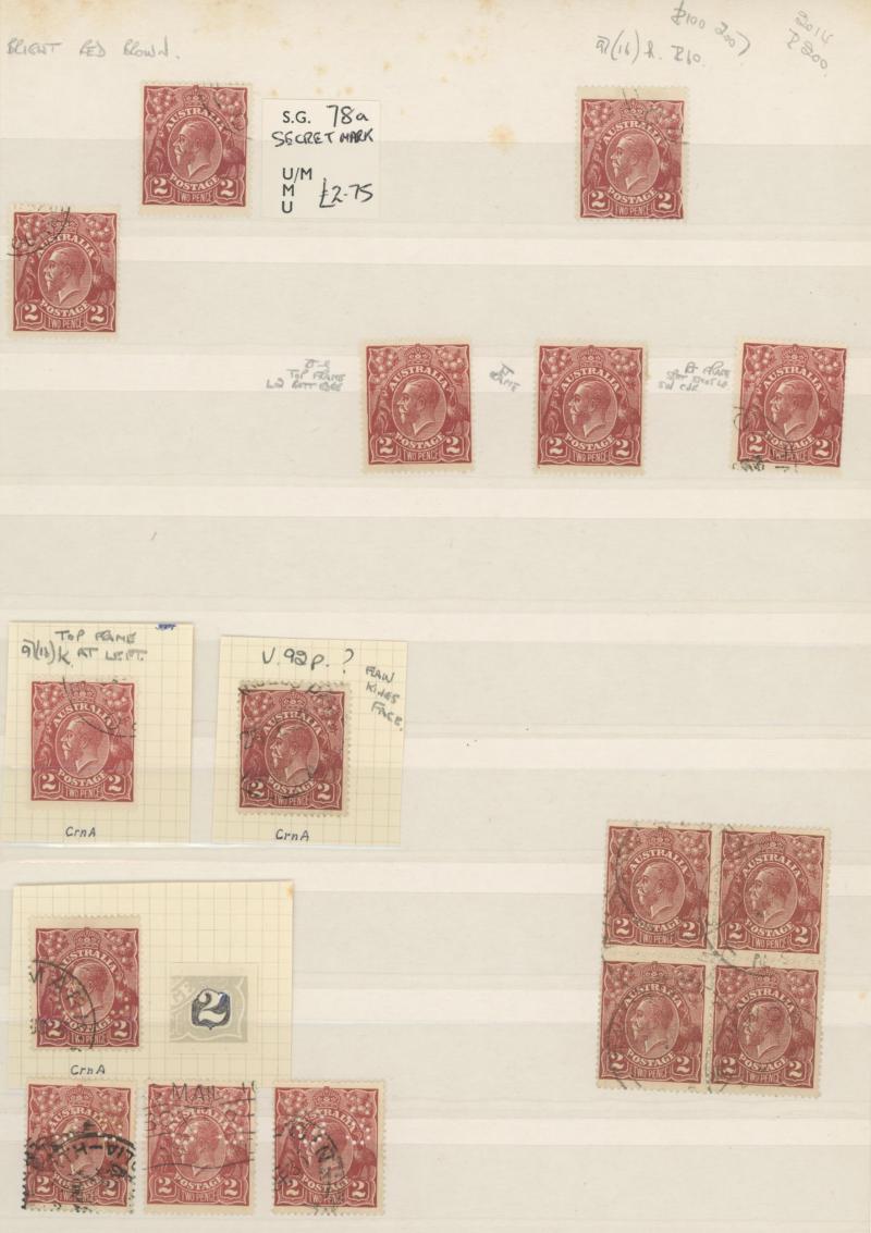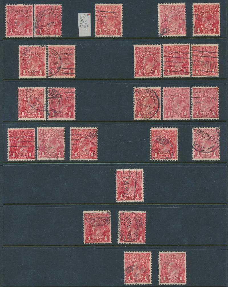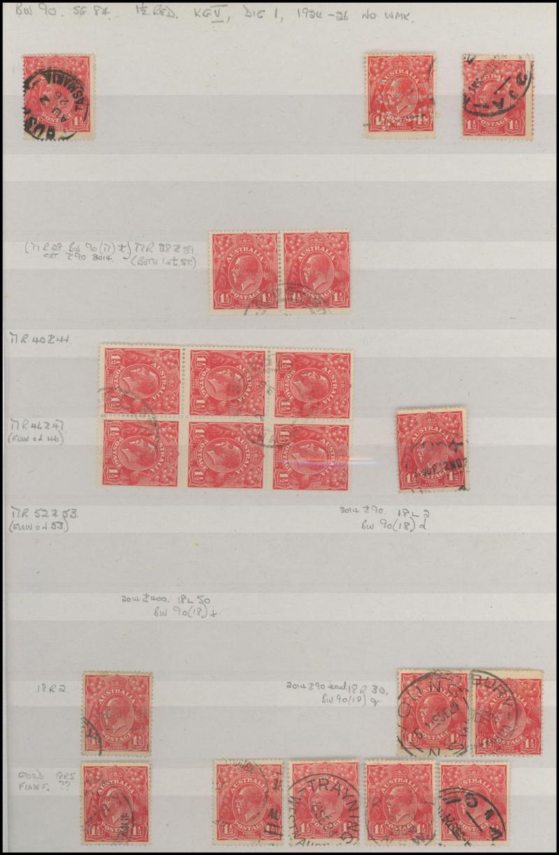 replaced it, No Wmk Obliterated 'AL' of 'HALFPENNY', etc, also a detailed study of Electro 13 & 14 Worn Upper Frames, also lots of other multiples, Federal & State Government punctures, and unplated examples many with dated cancels & potential